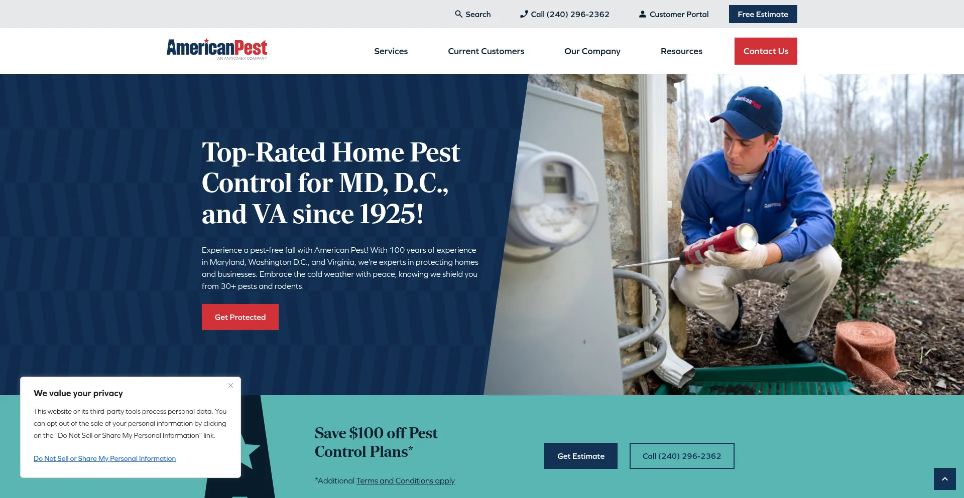 The website implements cookie consent mechanisms in compliance with privacy regulations such as GDPR or CCPA. This demonstrates that americanpest.net adheres to data protection standards and provides users with control over personal data collection practices.