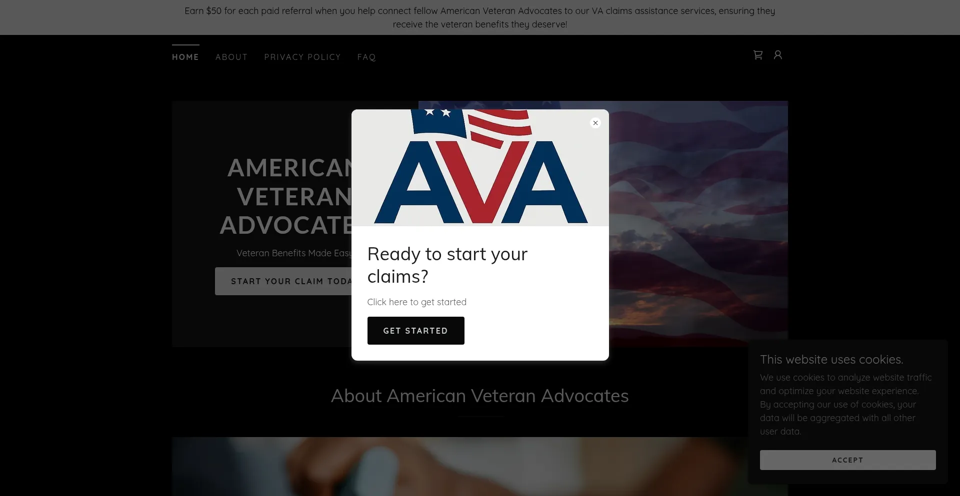 The website implements cookie consent mechanisms in compliance with privacy regulations such as GDPR or CCPA. This demonstrates that americanveteranadvocates.com adheres to data protection standards and provides users with control over personal data collection practices.