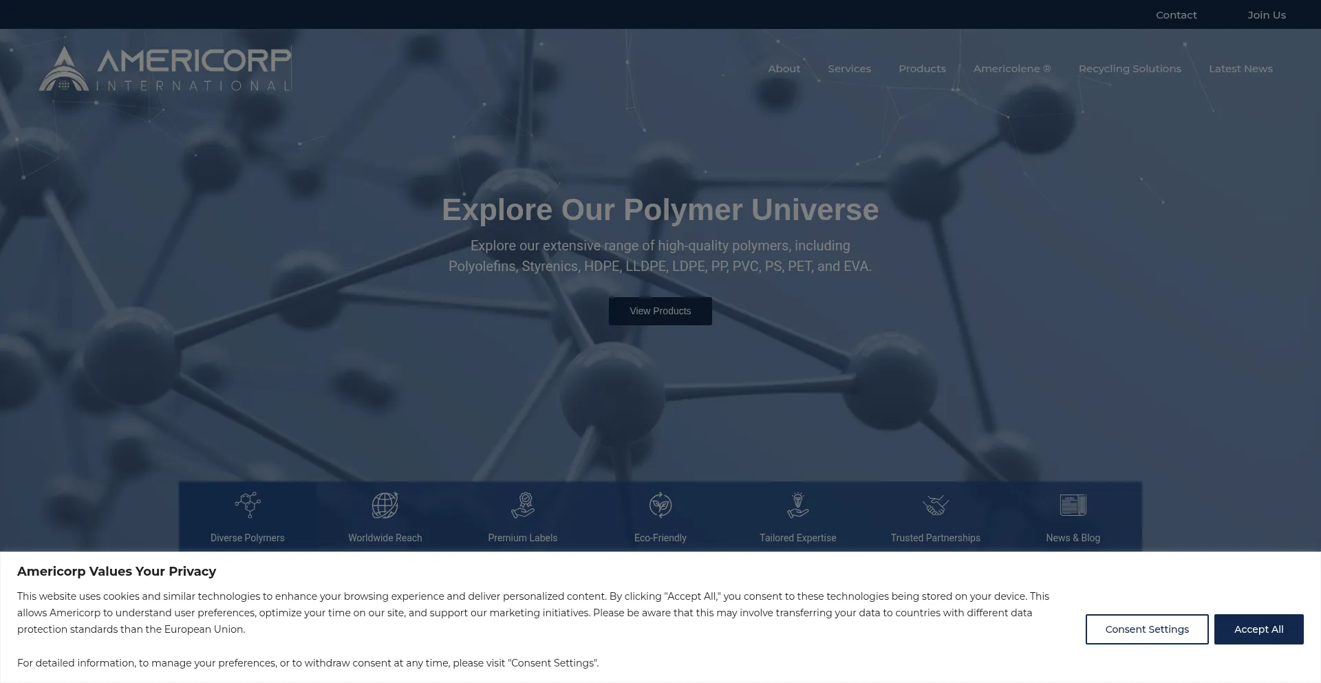 The website implements cookie consent mechanisms in compliance with privacy regulations such as GDPR or CCPA. This demonstrates that americorpint.com adheres to data protection standards and provides users with control over personal data collection practices.