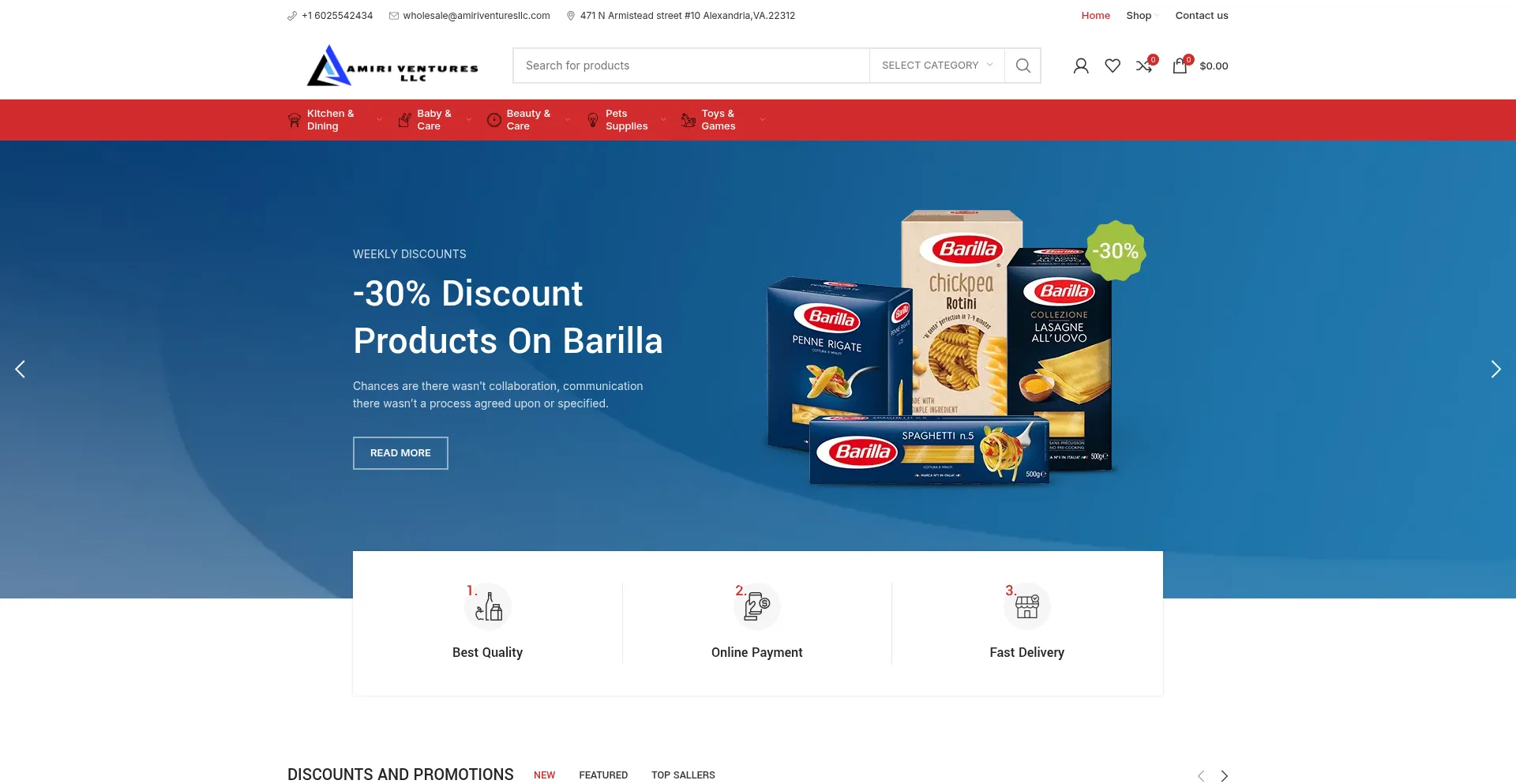Analysis indicates that amiriventuresllc.com operates as an e-commerce platform facilitating online transactions for goods or services. The website implements shopping cart functionality, payment processing systems, and product catalog features typical of commercial retail operations.
