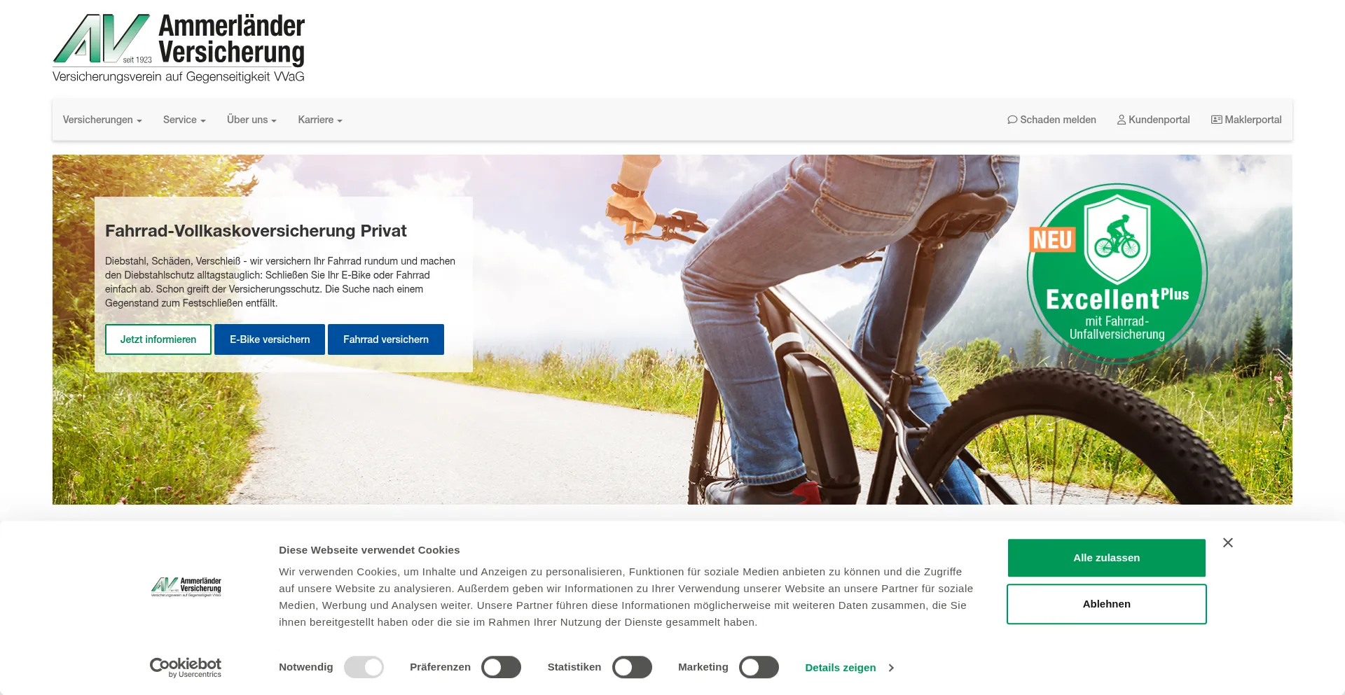 The website implements cookie consent mechanisms in compliance with privacy regulations such as GDPR or CCPA. This demonstrates that ammerlaender-versicherung.de adheres to data protection standards and provides users with control over personal data collection practices.