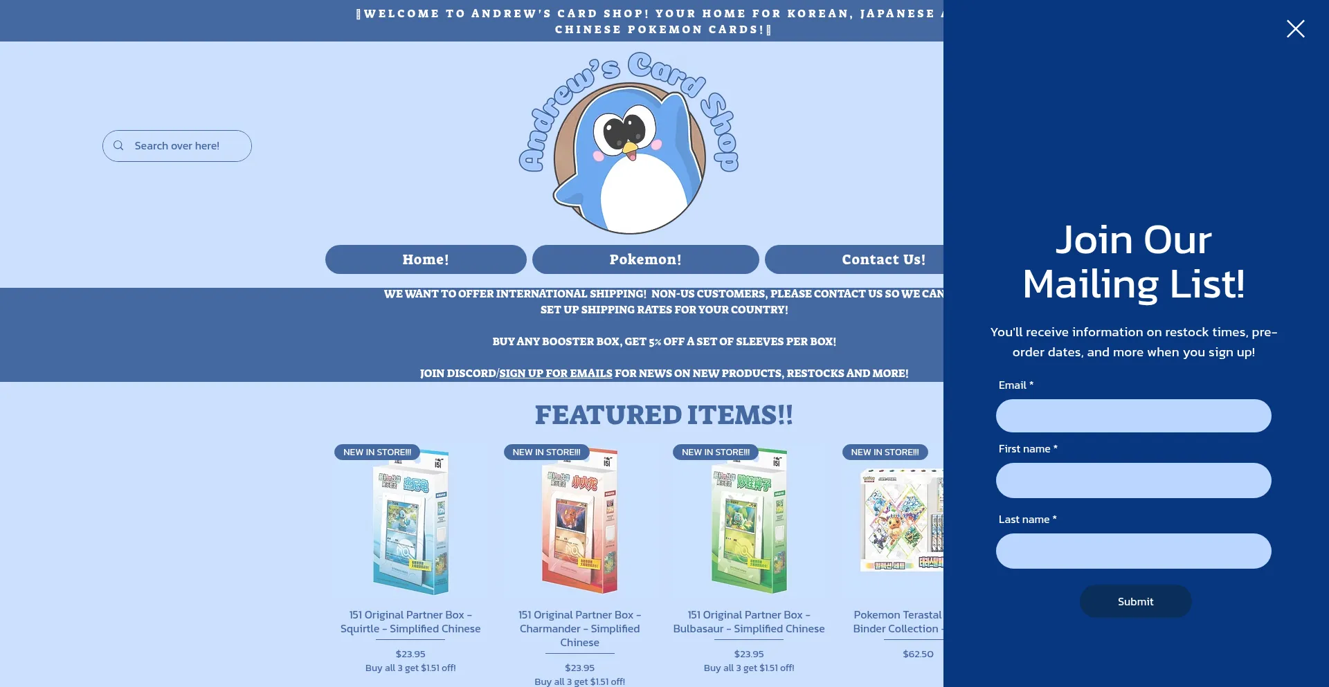 Andrew's Card Shop | Korean, Chinese and Japanese Pokemon!