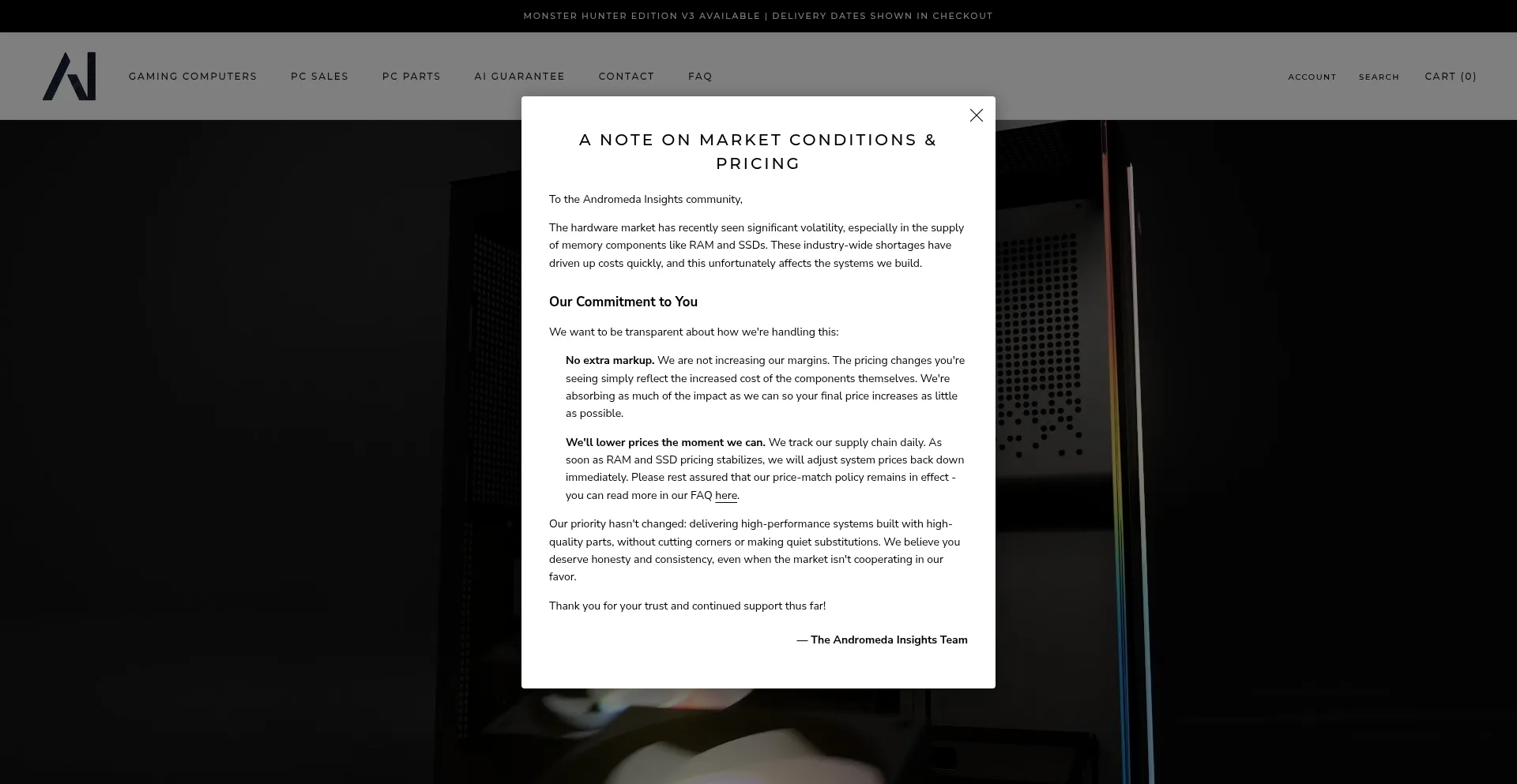 Here at Andromeda Insights, we build premium gaming PCs using our industry expertise to elevate your experience. We offer custom gaming PCs, prebuilt gaming PCs, and accessories...