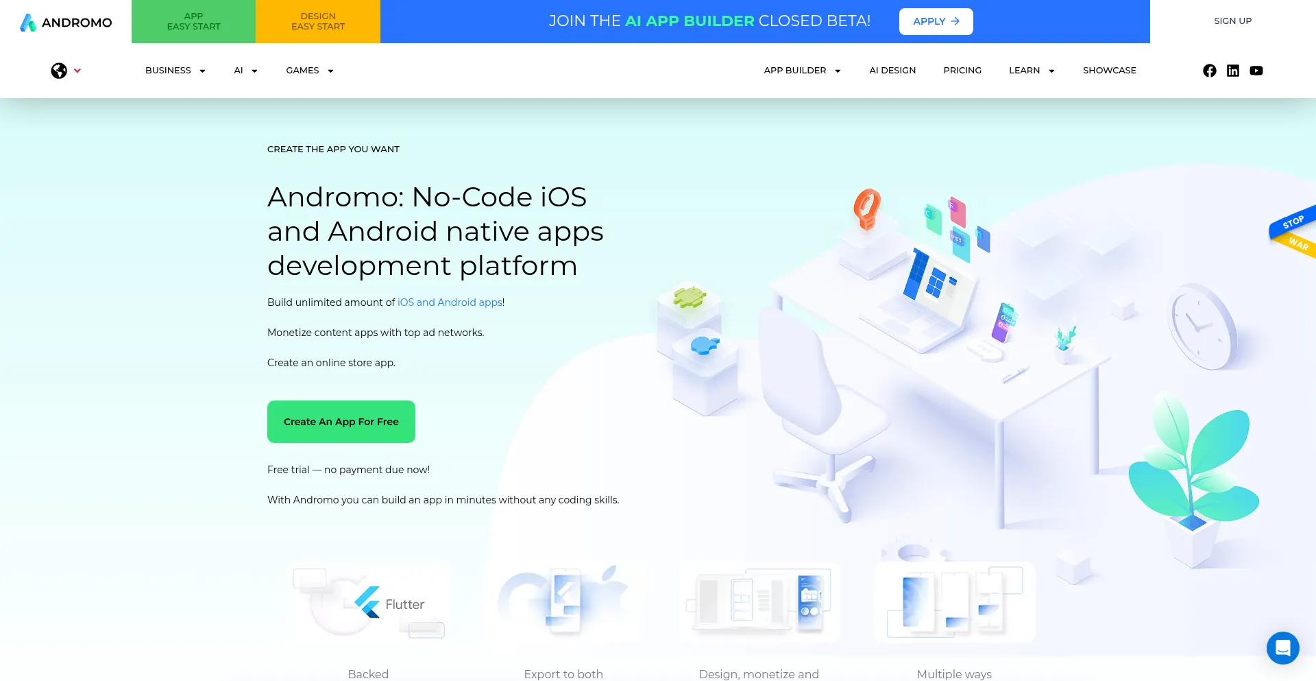 Andromo is a premium app building platform where you can create professional Android and iOS apps without writing a single line of code