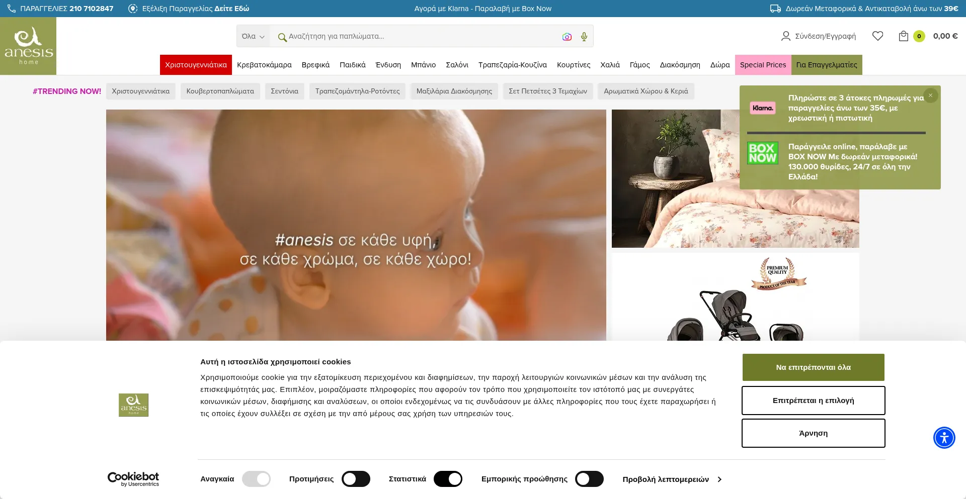 The website implements cookie consent mechanisms in compliance with privacy regulations such as GDPR or CCPA. This demonstrates that anesishome.gr adheres to data protection standards and provides users with control over personal data collection practices.
