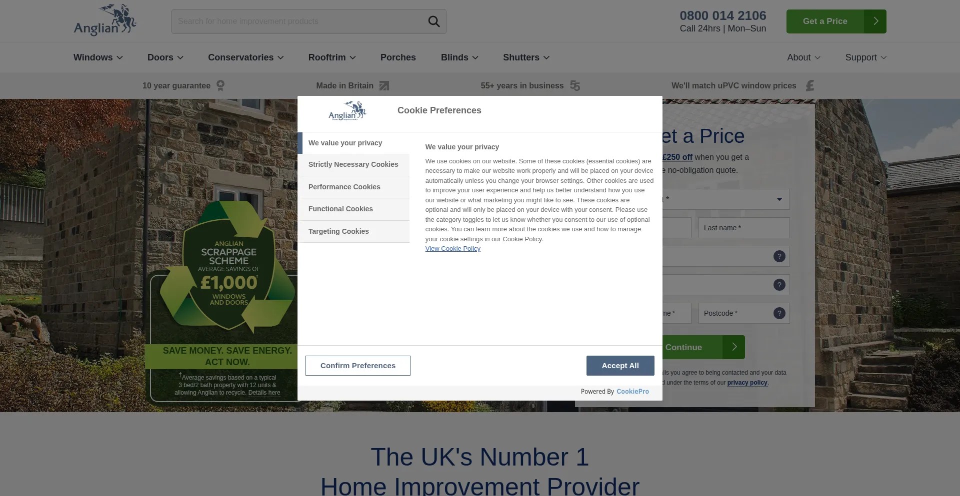 The website implements cookie consent mechanisms in compliance with privacy regulations such as GDPR or CCPA. This demonstrates that anglianhome.co.uk adheres to data protection standards and provides users with control over personal data collection practices.