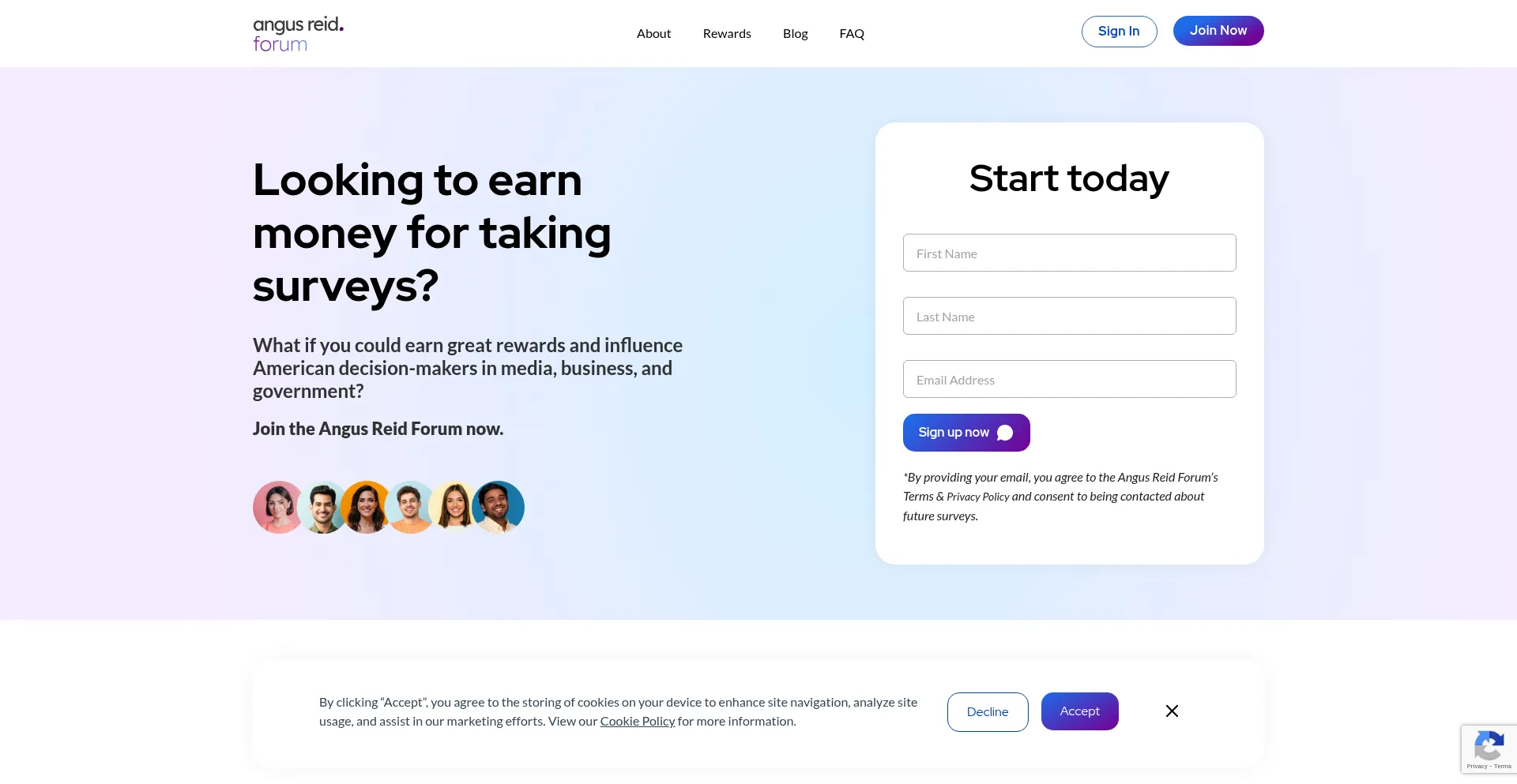 The angusreidusa.com website implements data collection forms that may request personal information including names, email addresses, phone numbers, or other sensitive details. Users should verify the legitimacy of it and review privacy policies before submitting personal data.
