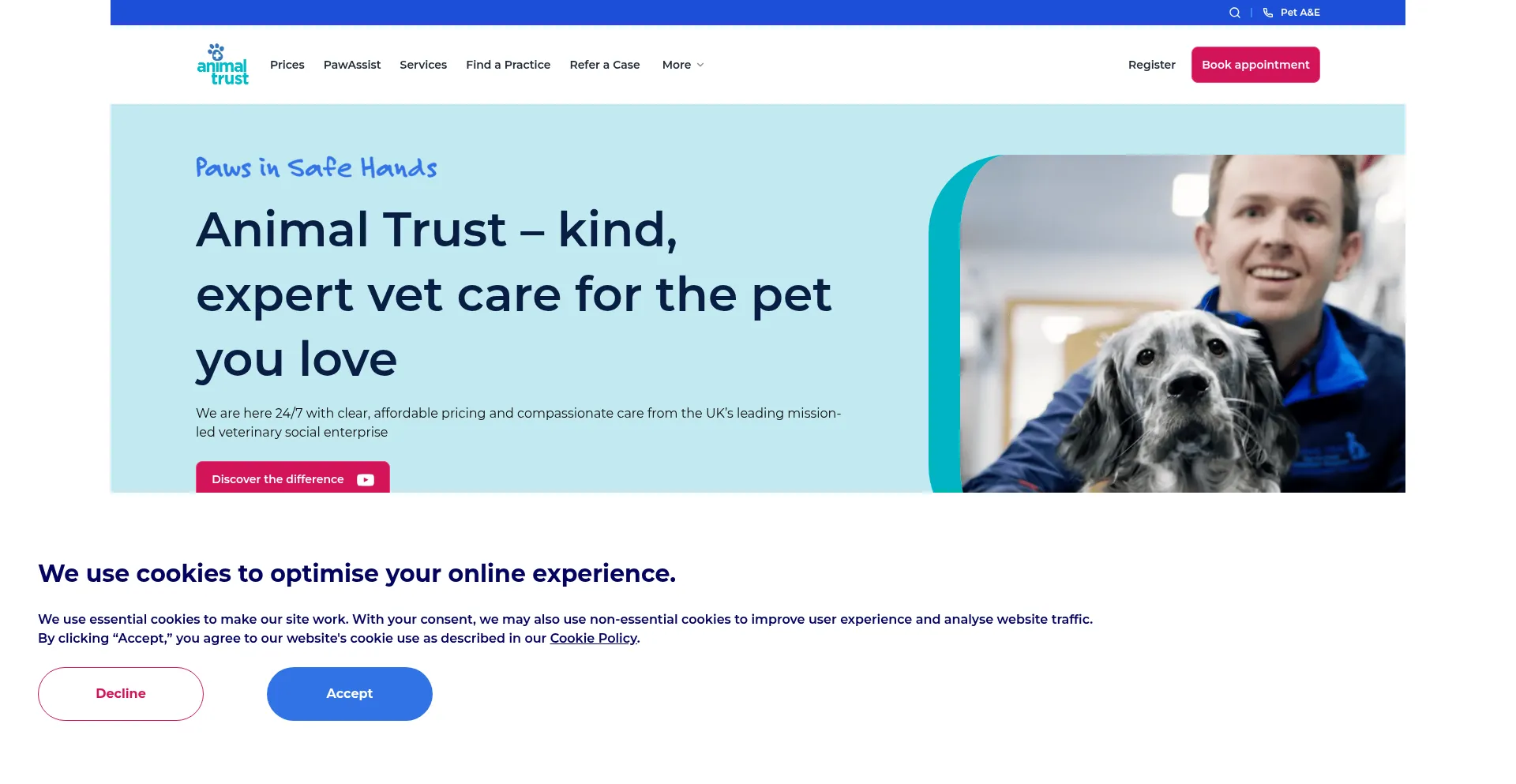 Discover affordable veterinary services with Animal Trust. From general care to 24/7 accident and emergencies, we provide quality care for your pets.
