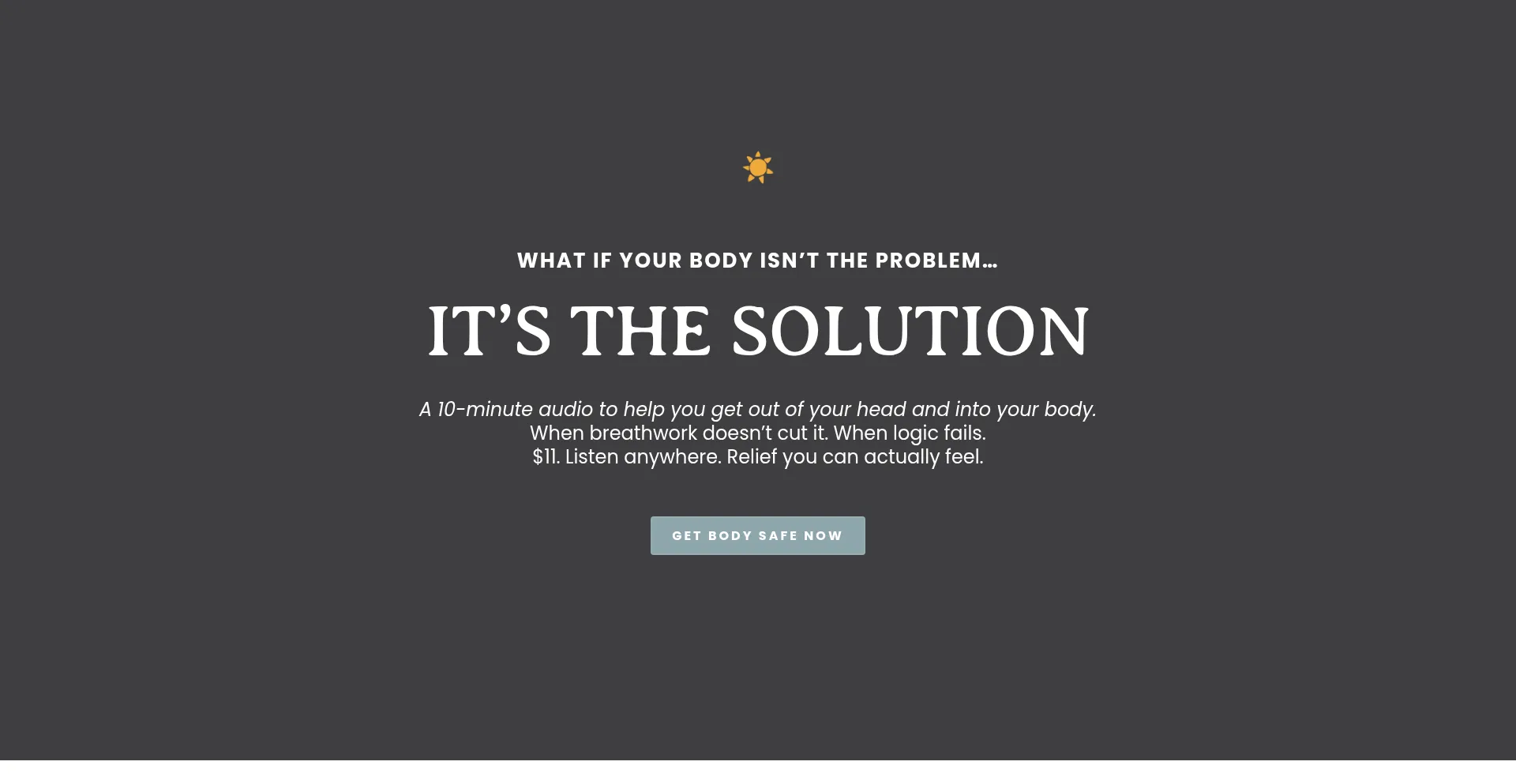 A 10-minute somatic listening experience from a trauma-informed therapist that helps your body feel safe, seen, and soothed in real time.