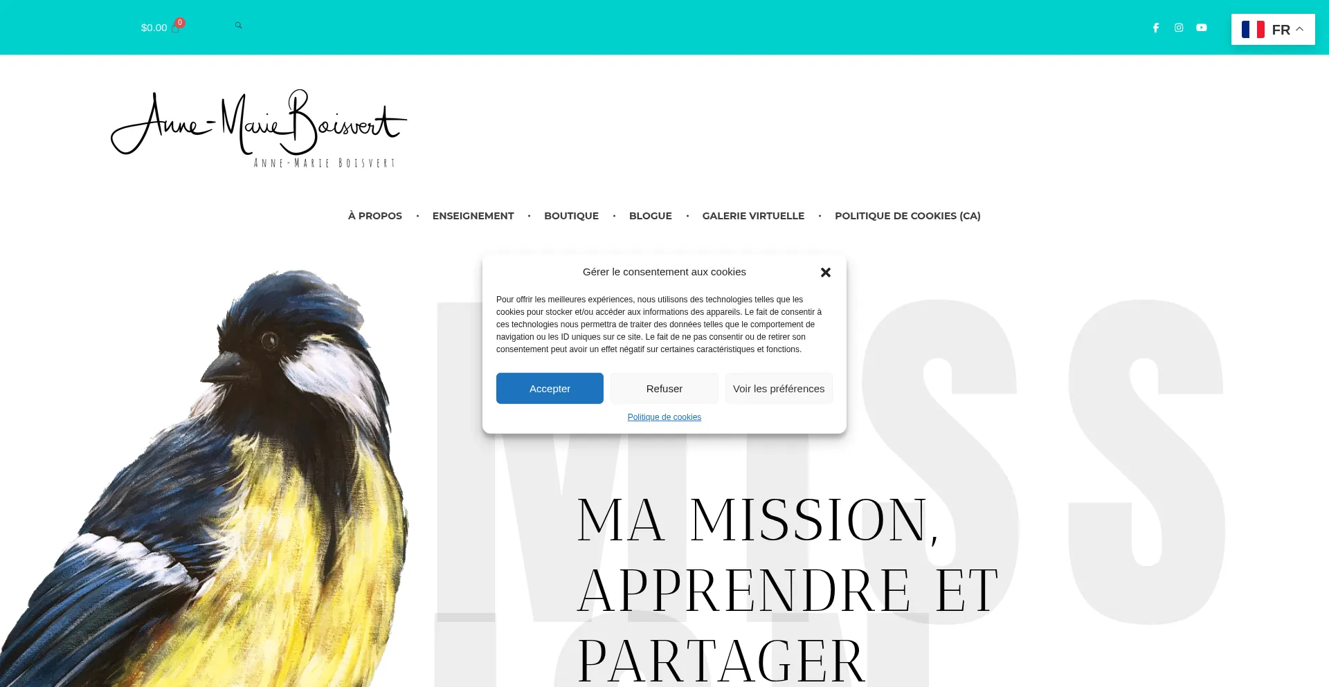 Analysis indicates that annemarieboisvert.com operates as an e-commerce platform facilitating online transactions for goods or services. The website implements shopping cart functionality, payment processing systems, and product catalog features typical of commercial retail operations.