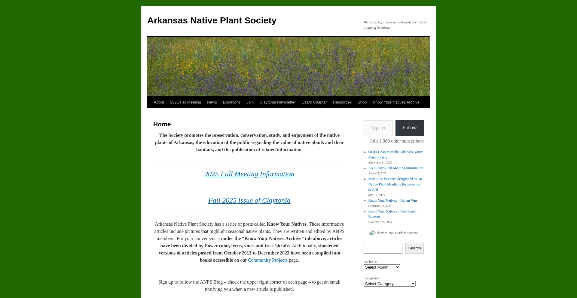 The Society promotes the preservation, conservation, study, and enjoyment of the native plants of Arkansas, the education of the public regarding the value of native plants and ...