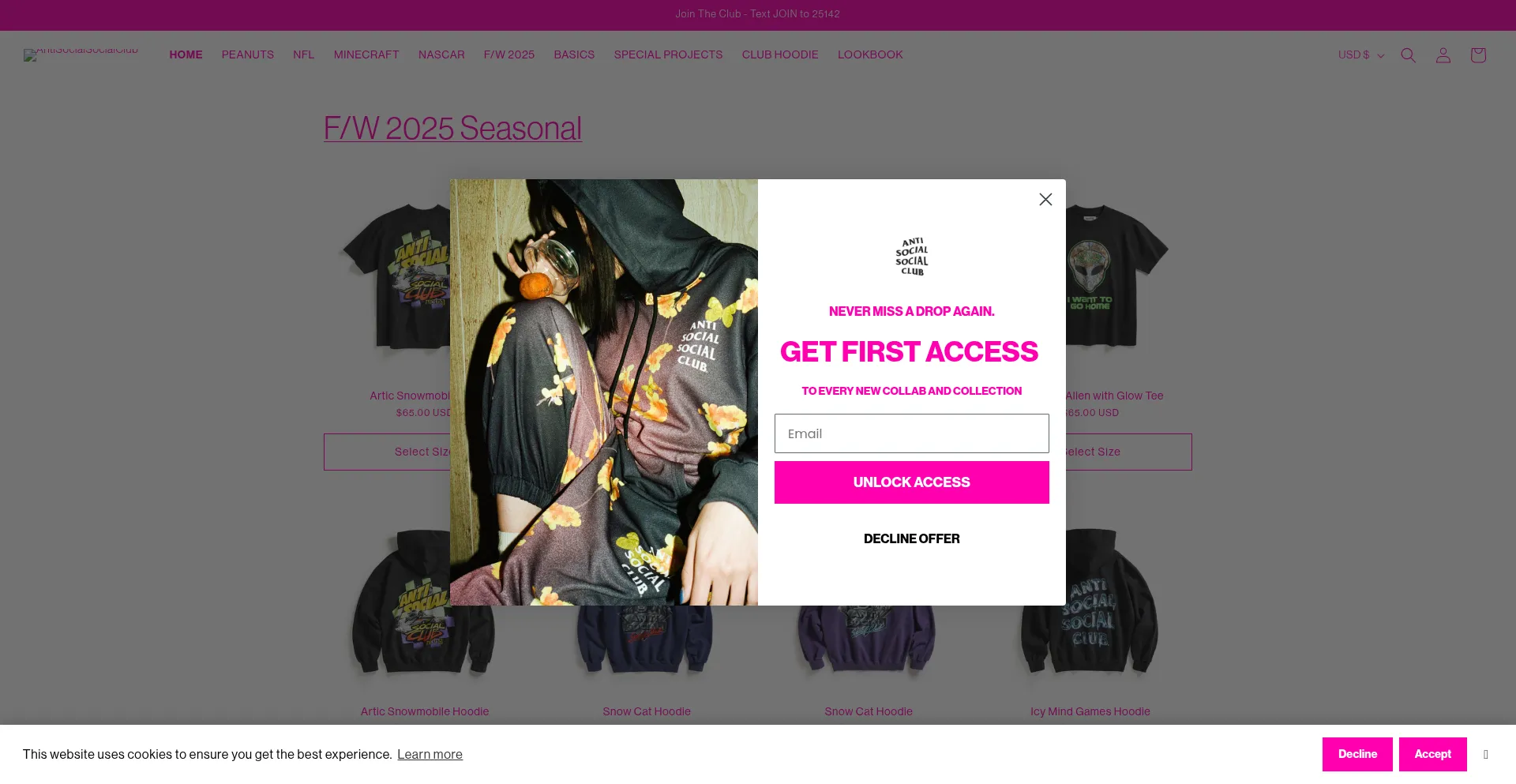The website implements cookie consent mechanisms in compliance with privacy regulations such as GDPR or CCPA. This demonstrates that antisocialsocialclub.com adheres to data protection standards and provides users with control over personal data collection practices.