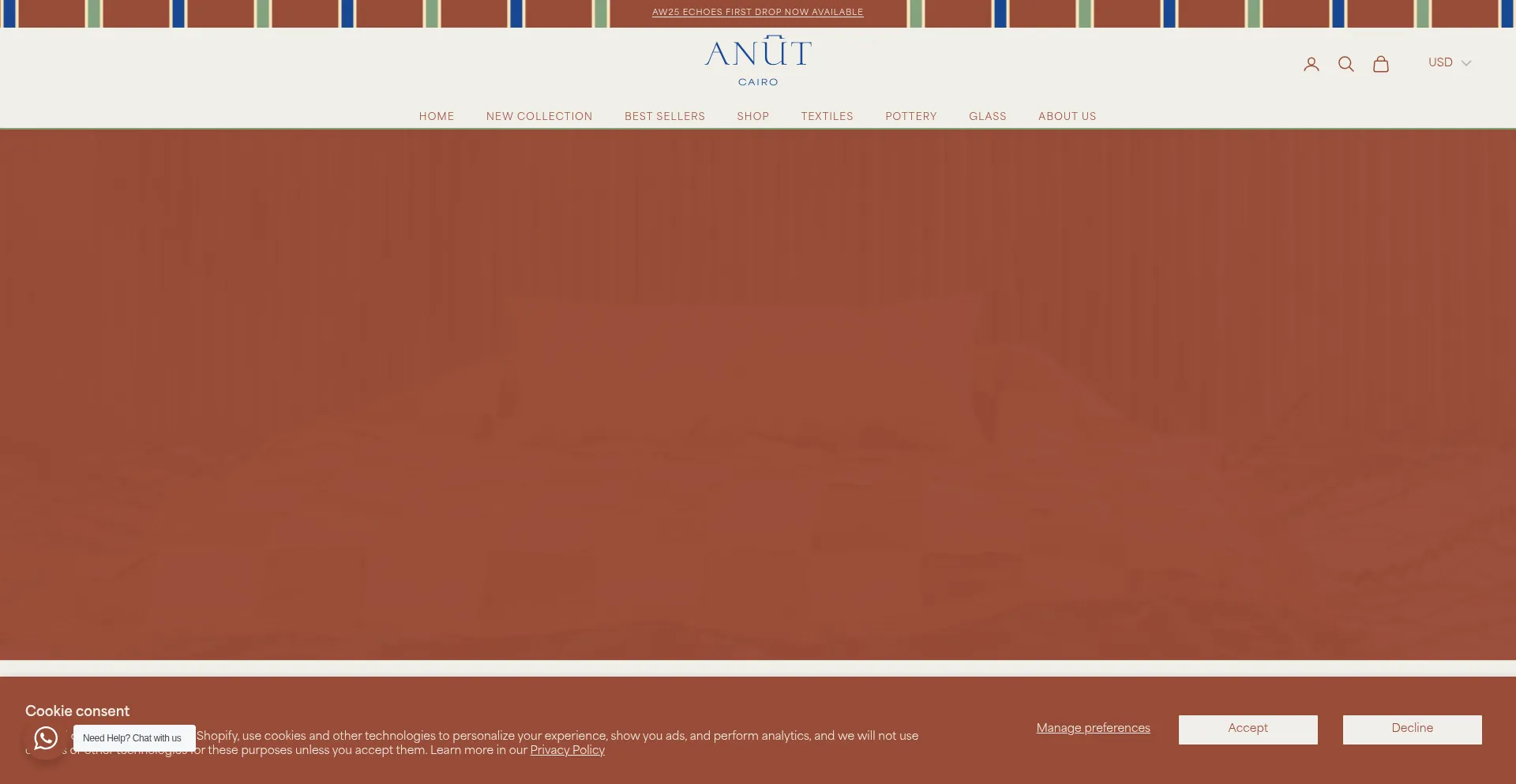 Anūt Cairo creates contemporary homeware inspired by Egypt’s heritage, handcrafted by artisans nationwide. It preserves traditional skills through its embroidery school and u...