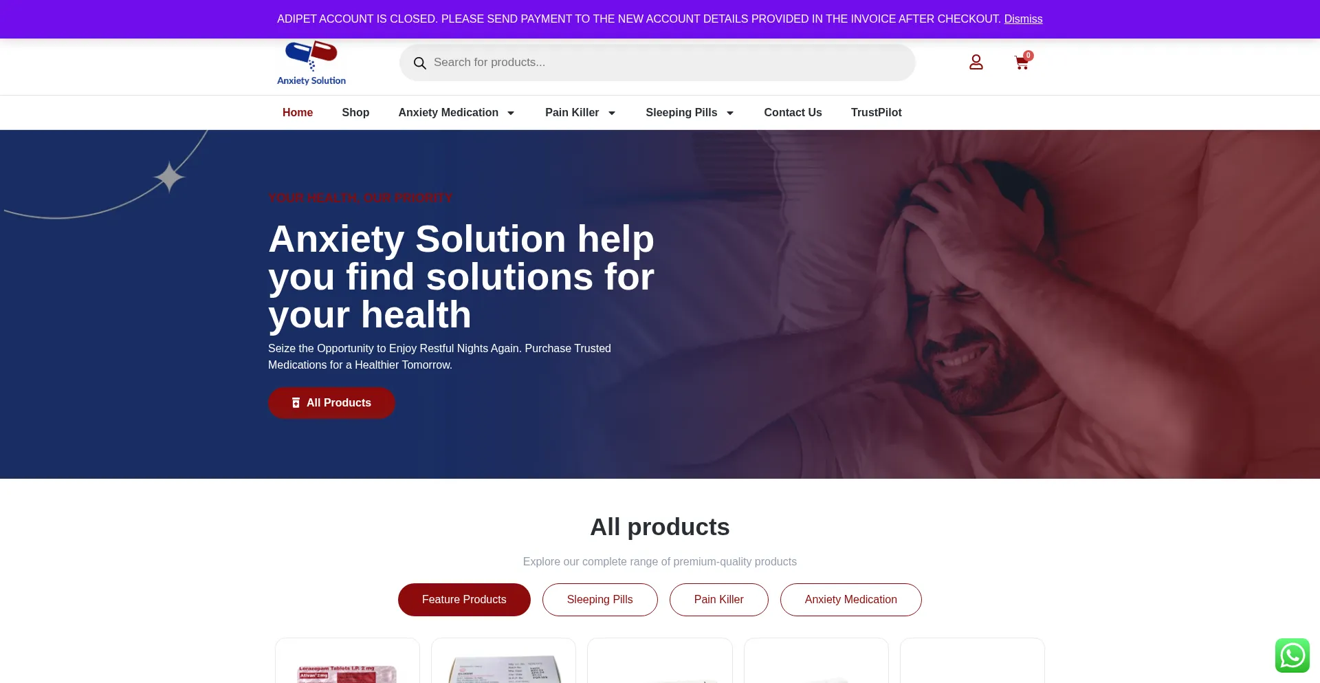 Analysis indicates that anxietysolution.co operates as an e-commerce platform facilitating online transactions for goods or services. The website implements shopping cart functionality, payment processing systems, and product catalog features typical of commercial retail operations.