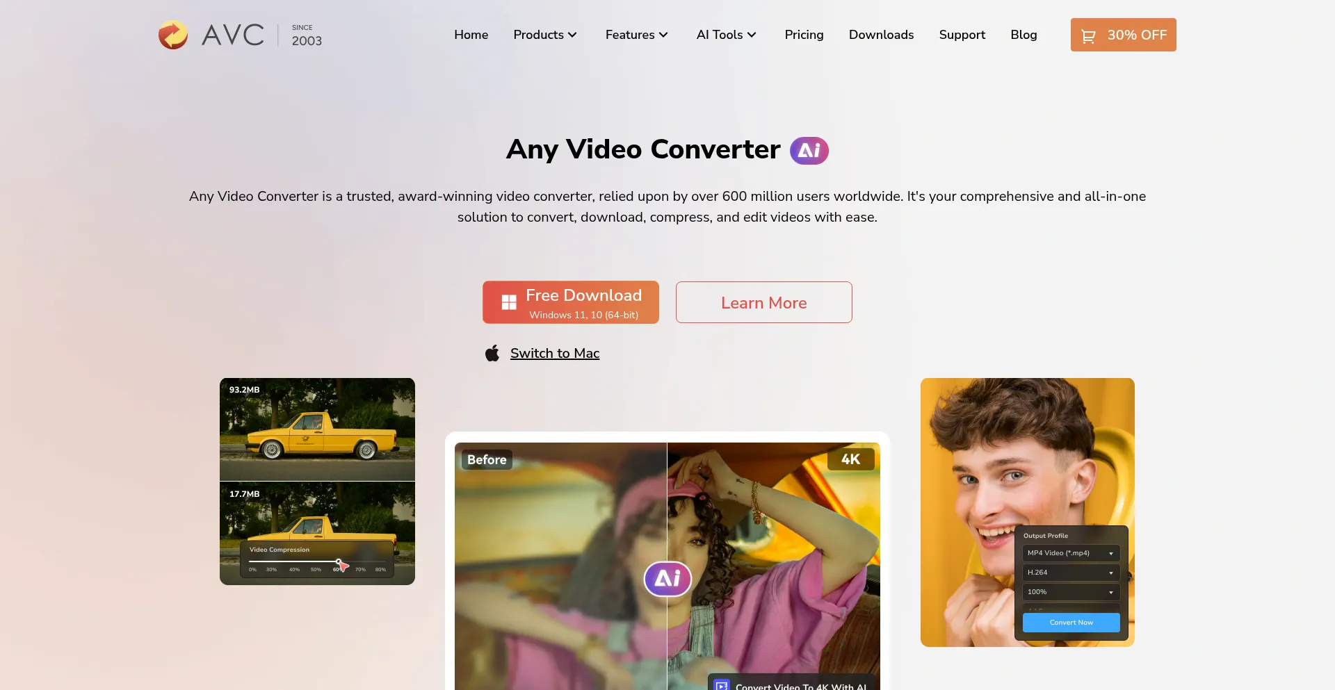 Any Video Converter is a powerful yet free video converter, video enhancer, video compressor, and video editor, featuring an array of AI tools.