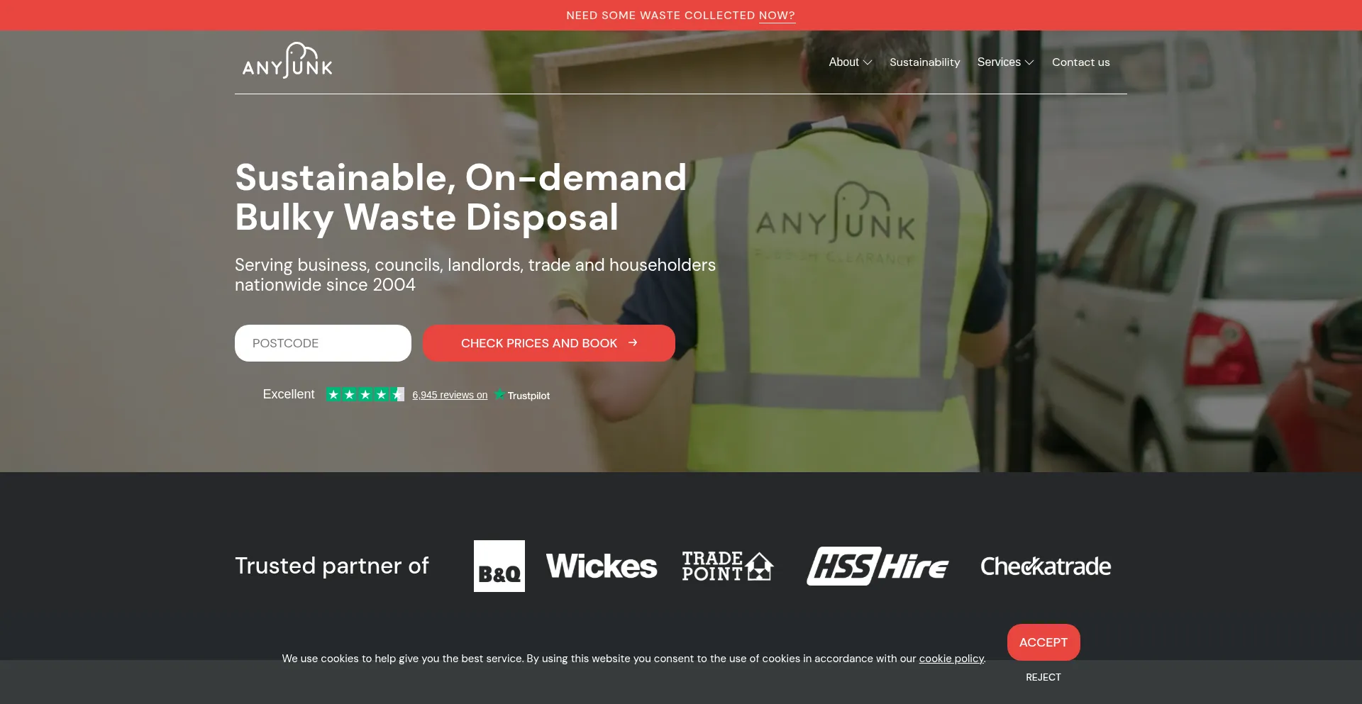 AnyJunk Limited website. Voted Best UK Company by British Chambers of Commerce. Specialist in On-Demand Sustaintable Waste Removal.