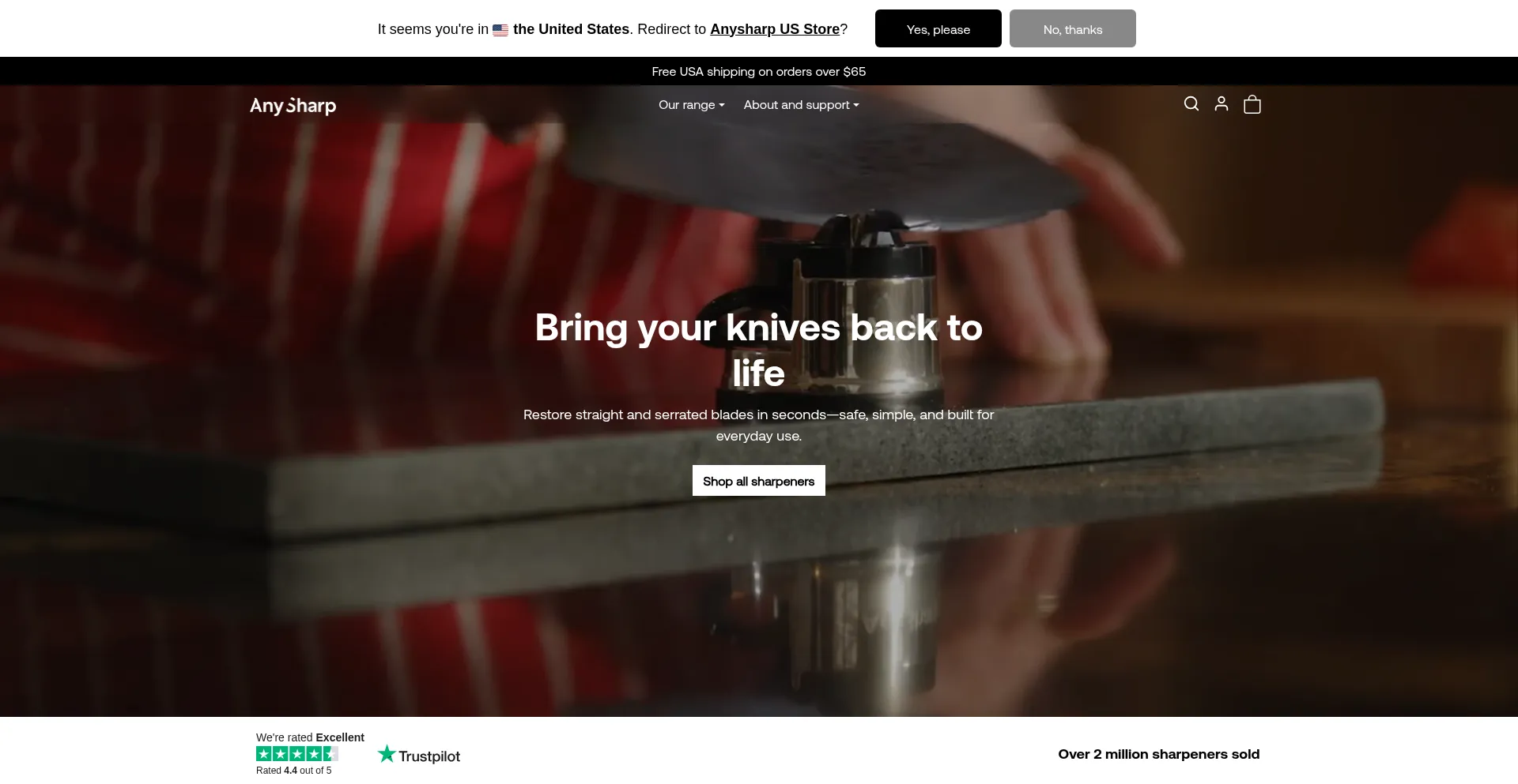Our analyzer determines that website anysharp.com is using Shopify CMS. Shopify is a popular e-commerce platform, powering around 4.4% of websites globally.