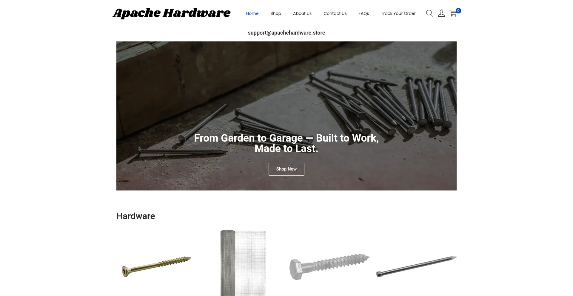 Analysis indicates that apachehardware.store operates as an e-commerce platform facilitating online transactions for goods or services. The website implements shopping cart functionality, payment processing systems, and product catalog features typical of commercial retail operations.