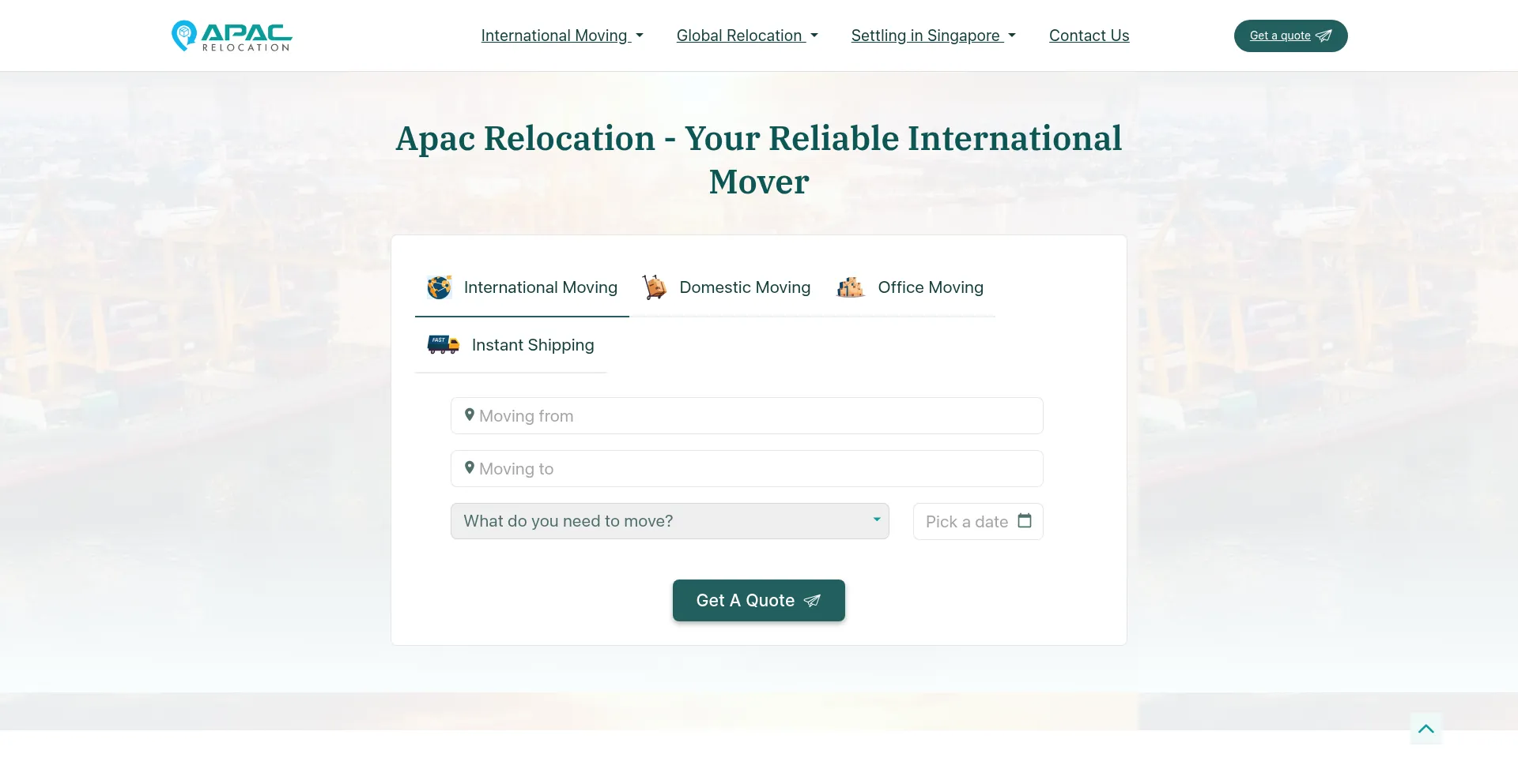 Experience hassle-free international and corporate moving from Singapore. Expert packing, secure shipping, and door to door relocation