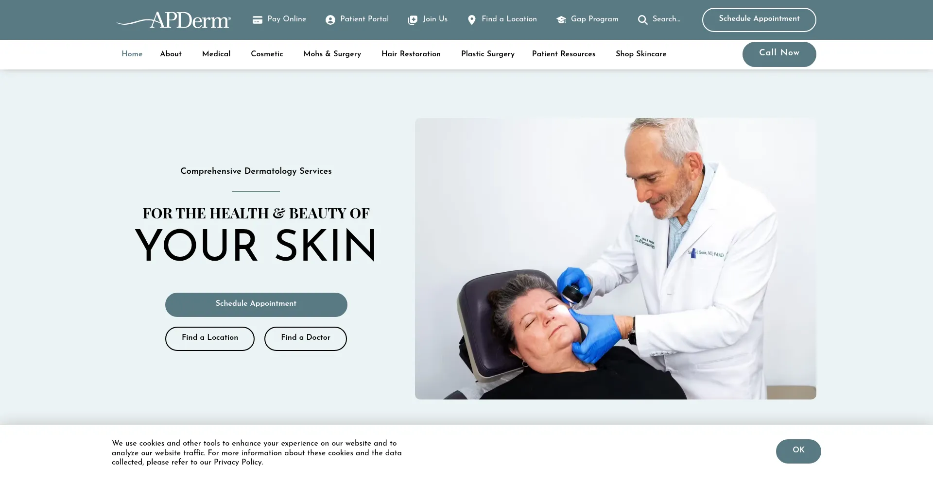 The website implements cookie consent mechanisms in compliance with privacy regulations such as GDPR or CCPA. This demonstrates that apderm.com adheres to data protection standards and provides users with control over personal data collection practices.