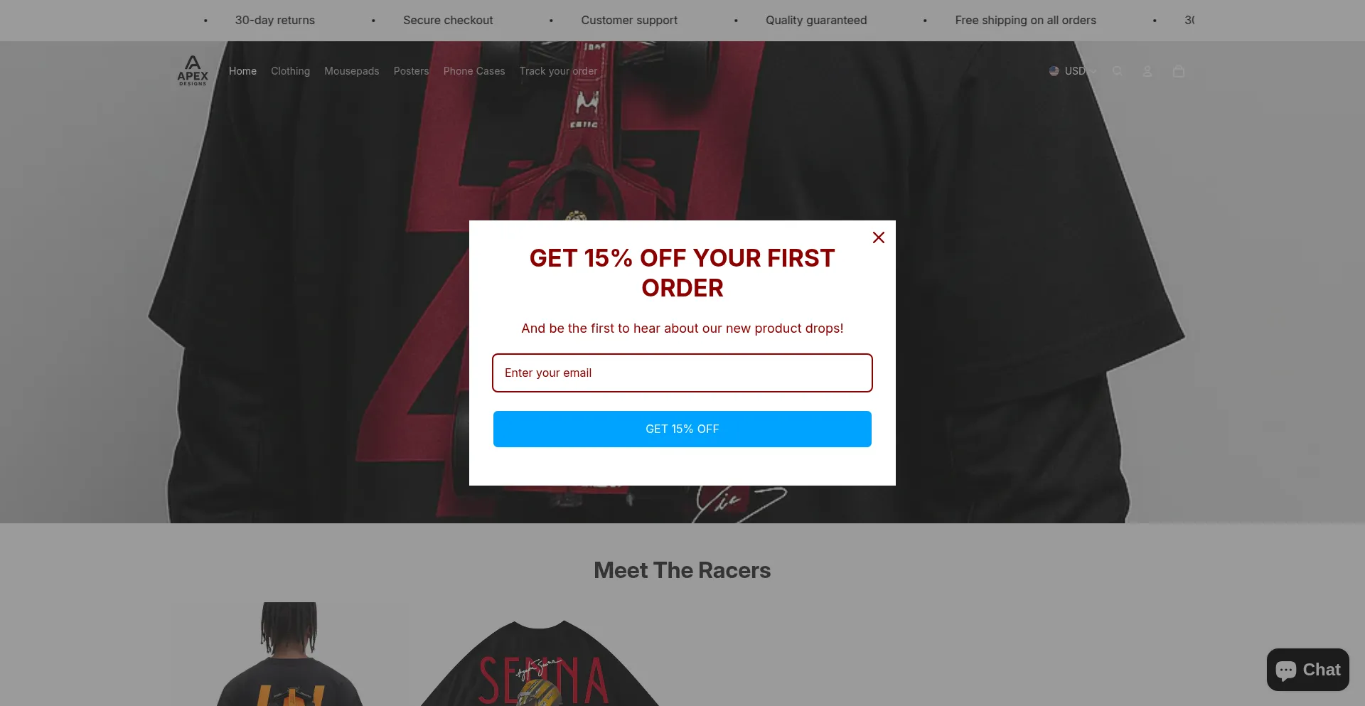 Analysis indicates that apexdesignsofficial.com operates as an e-commerce platform facilitating online transactions for goods or services. The website implements shopping cart functionality, payment processing systems, and product catalog features typical of commercial retail operations.
