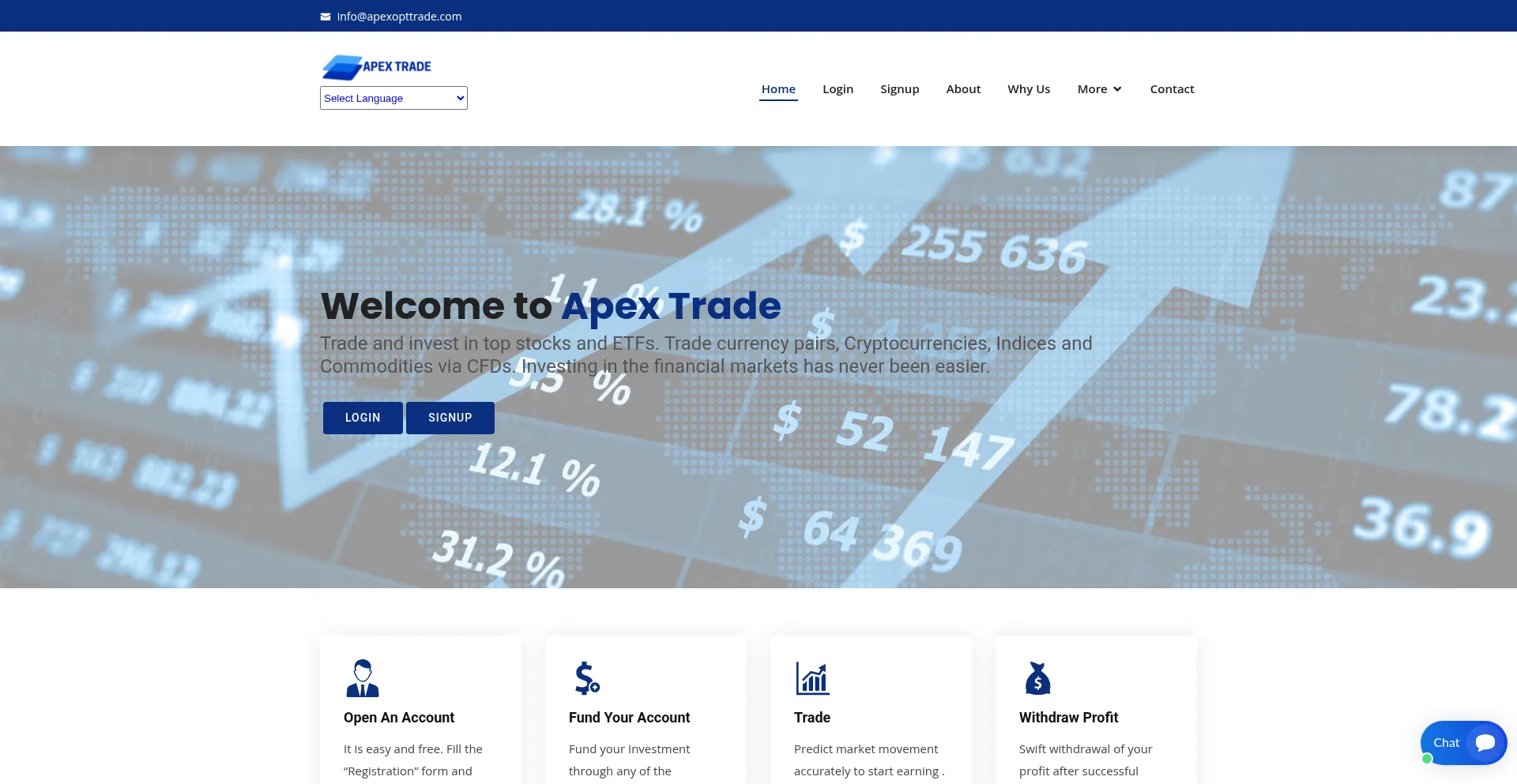 Apexopttrade.com operates as a suspicious website with multiple red flags that compromise its trustworthiness and user safety. The platform exhibits concerning characteristics including misleading information, questionable operational practices, or potential malware distribution that poses significant risks to visitors.