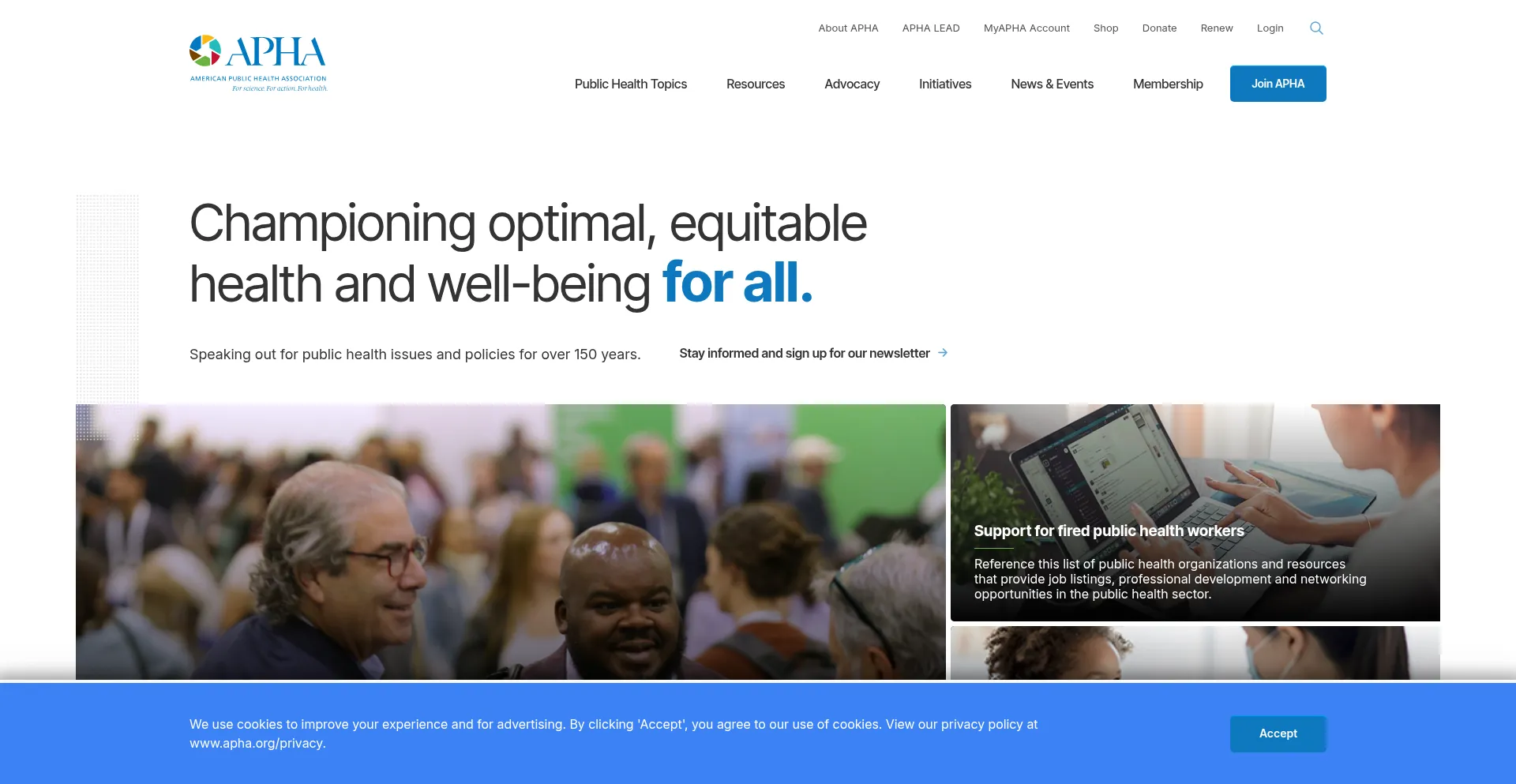 The website implements cookie consent mechanisms in compliance with privacy regulations such as GDPR or CCPA. This demonstrates that apha.org adheres to data protection standards and provides users with control over personal data collection practices.
