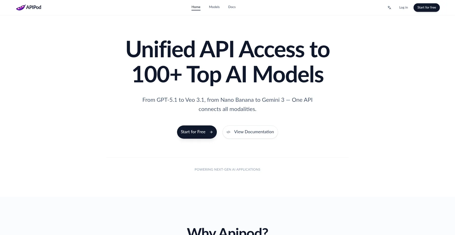 APIPod - One API, Access All Top AI Models, High-Performance & Price-Performance