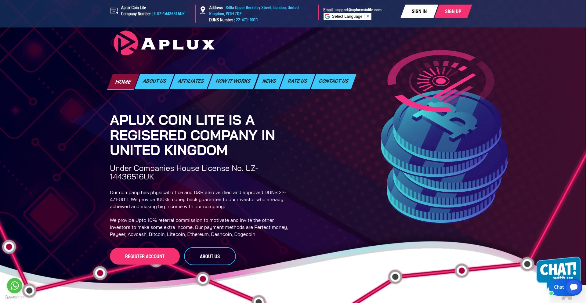 Apluxcoinlite.com Reviews: Check Scam or Safe? Very Low Trust 1/100
