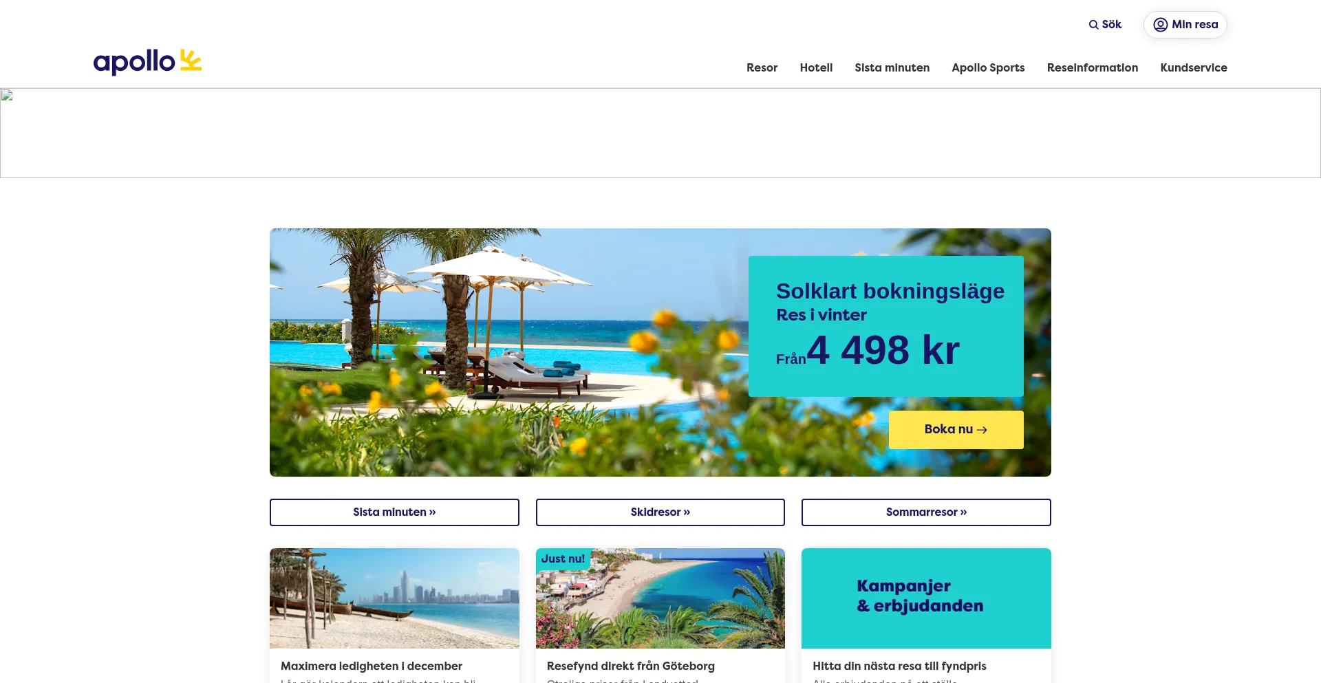 Upptäck världen med Apollo! Vi erbjuder ett brett utbud av resor – från bekväm charter med sol och bad till spännande weekendresor, träningsresor och lyxiga kryssningar....