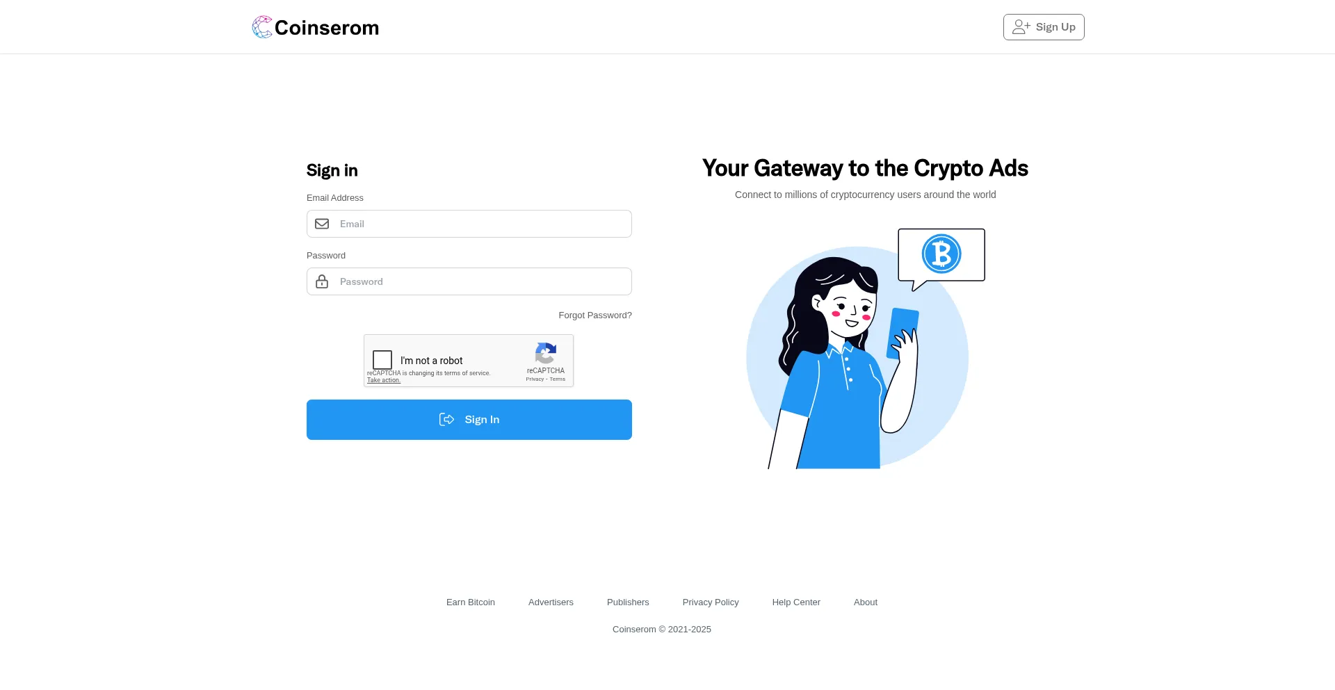 Access your Coinserom account to manage campaigns, track earnings, and view analytics.