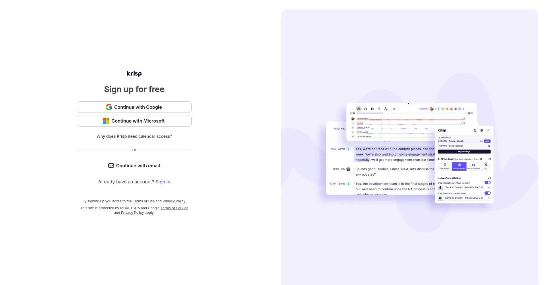 The app.krisp.ai website implements data collection forms that may request personal information including names, email addresses, phone numbers, or other sensitive details. Users should verify the legitimacy of it and review privacy policies before submitting personal data.
