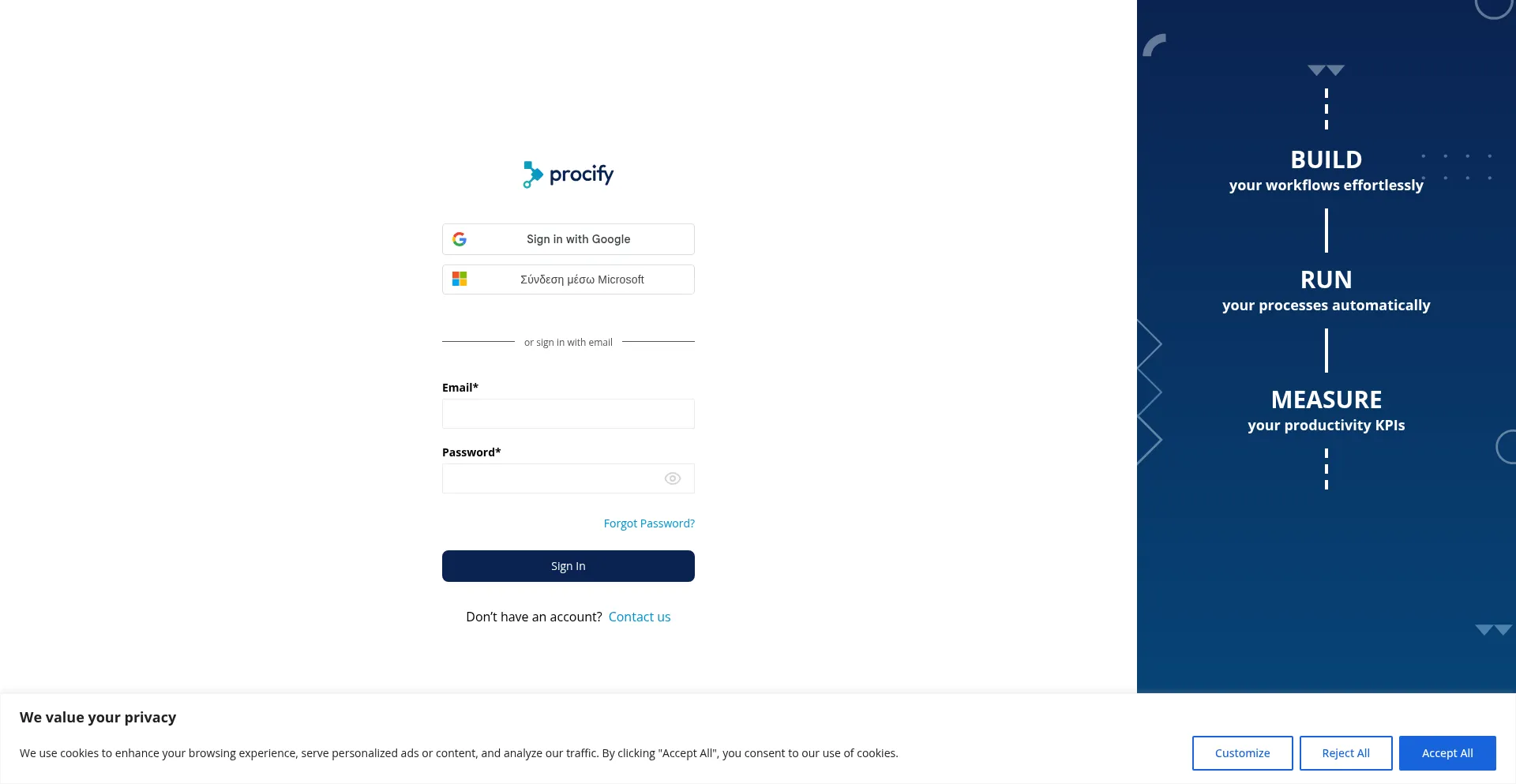 The website implements cookie consent mechanisms in compliance with privacy regulations such as GDPR or CCPA. This demonstrates that app.procify.digital adheres to data protection standards and provides users with control over personal data collection practices.