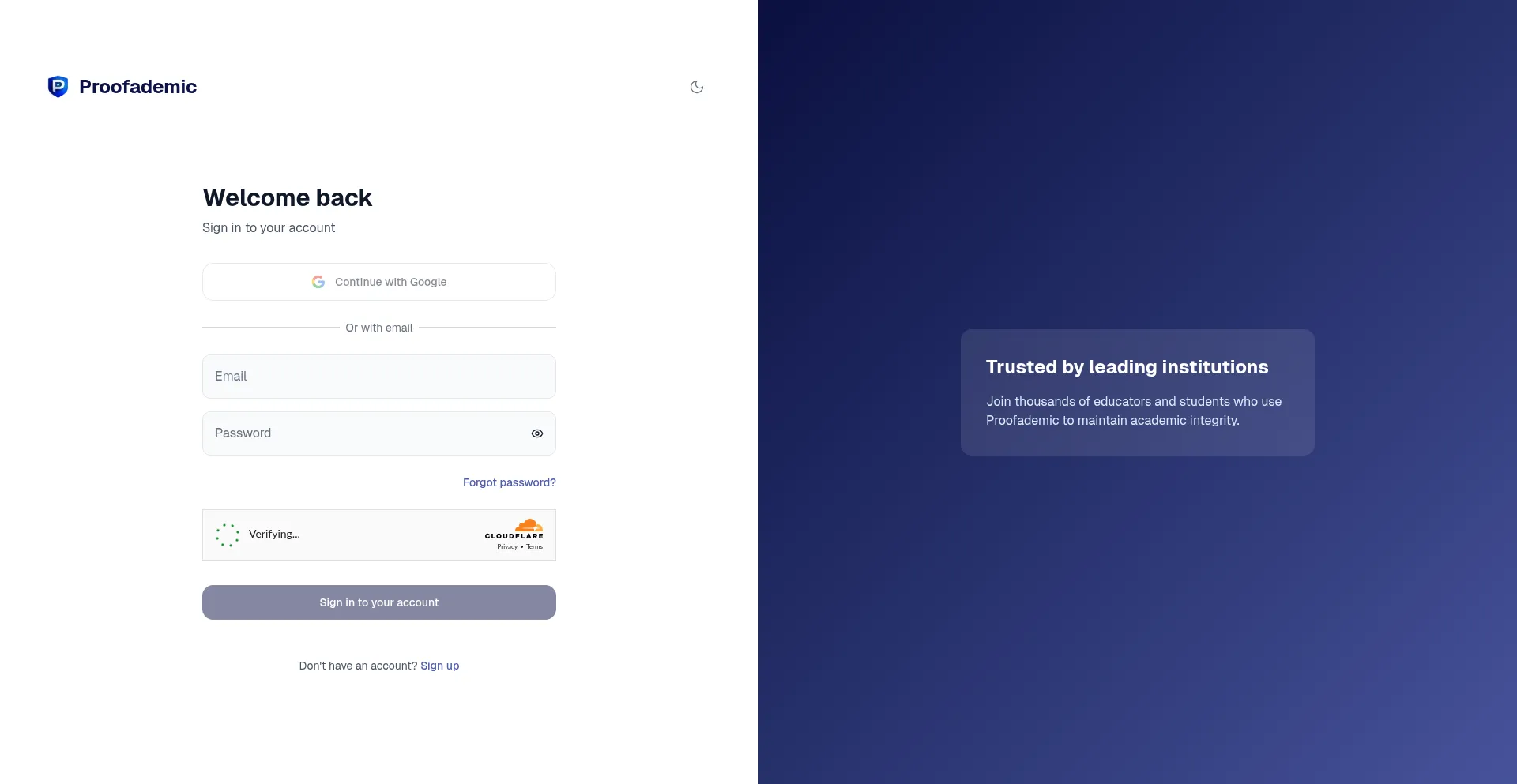 The app.proofademic.ai website implements data collection forms requesting personal information including names, email addresses, phone numbers, or other sensitive details. Users should verify the legitimacy of it and review privacy policies before submitting personal data.