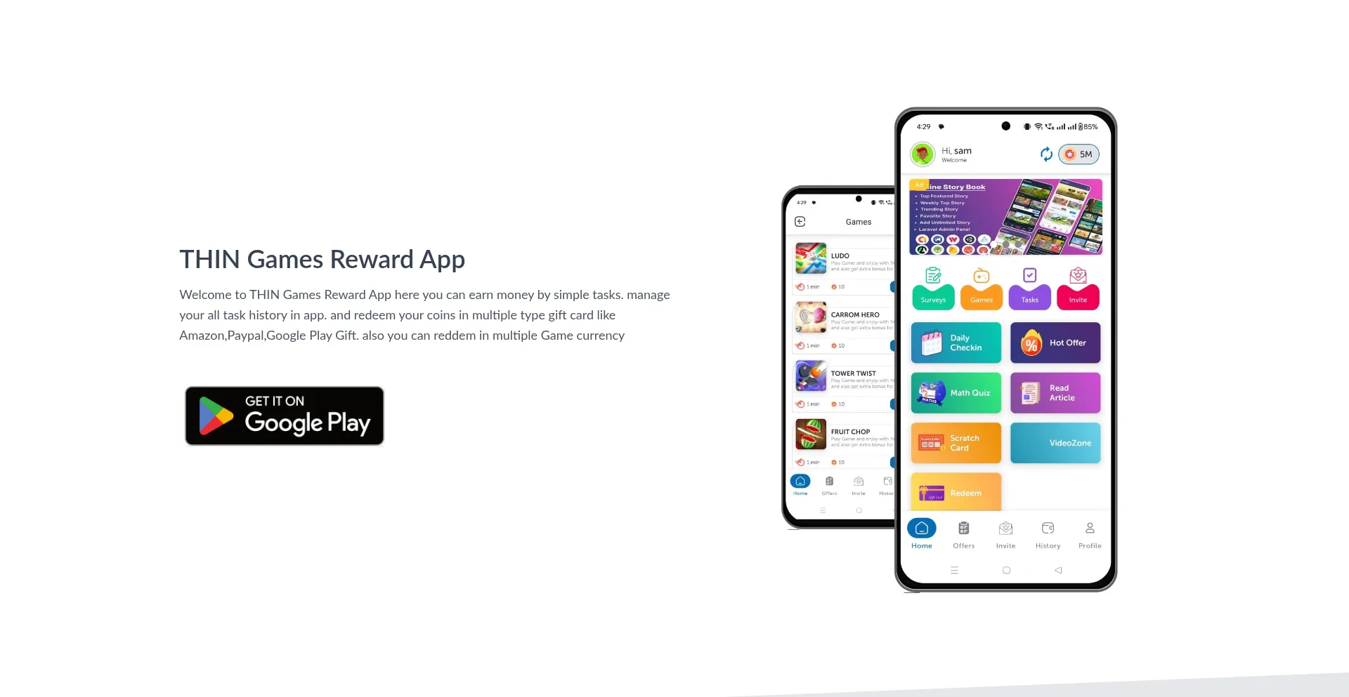 Welcome to THIN Games Reward App here you can earn money by simple tasks.