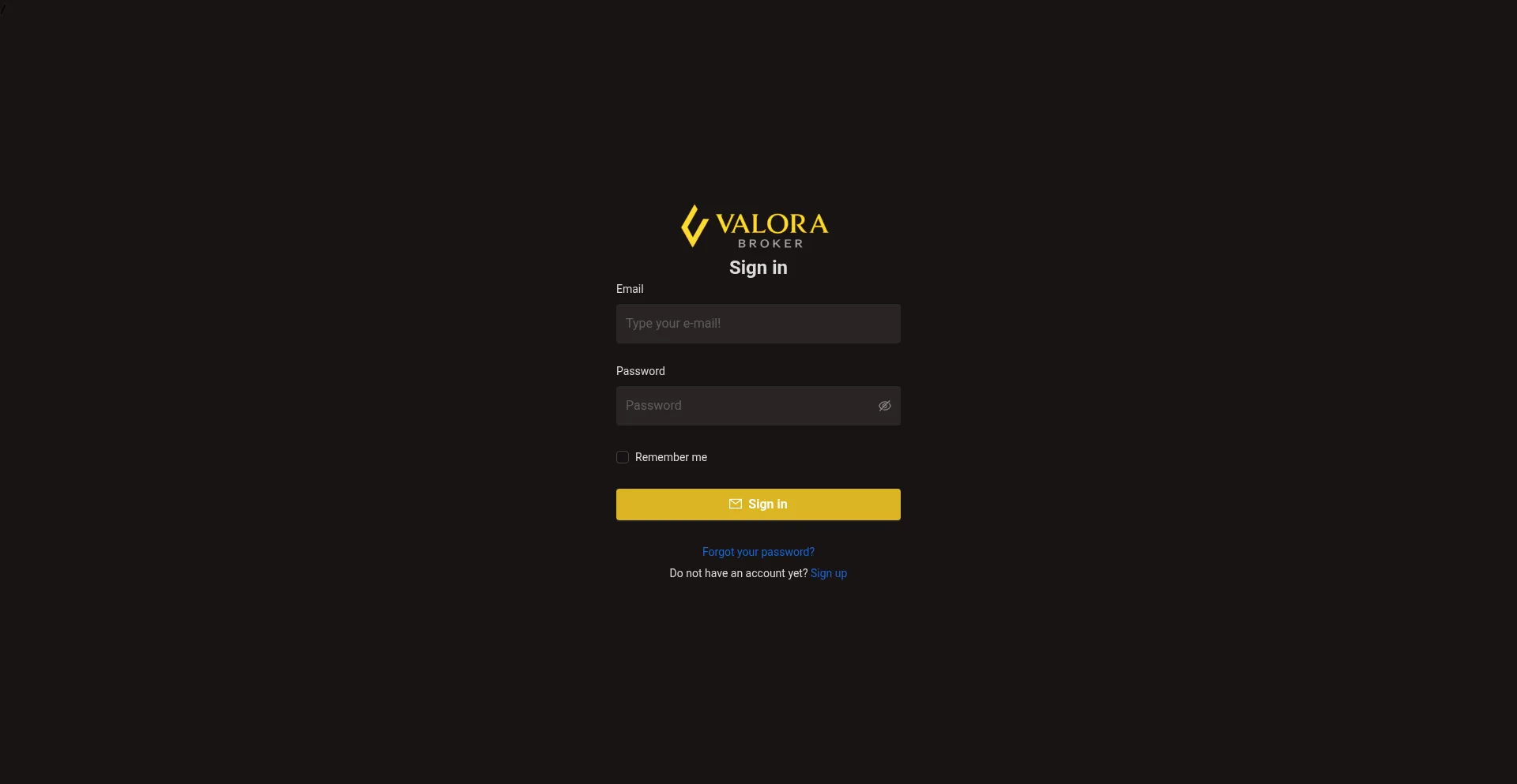 The app.valorabroker.io website implements data collection forms requesting personal information including names, email addresses, phone numbers, or other sensitive details. Users should verify the legitimacy of it and review privacy policies before submitting personal data.