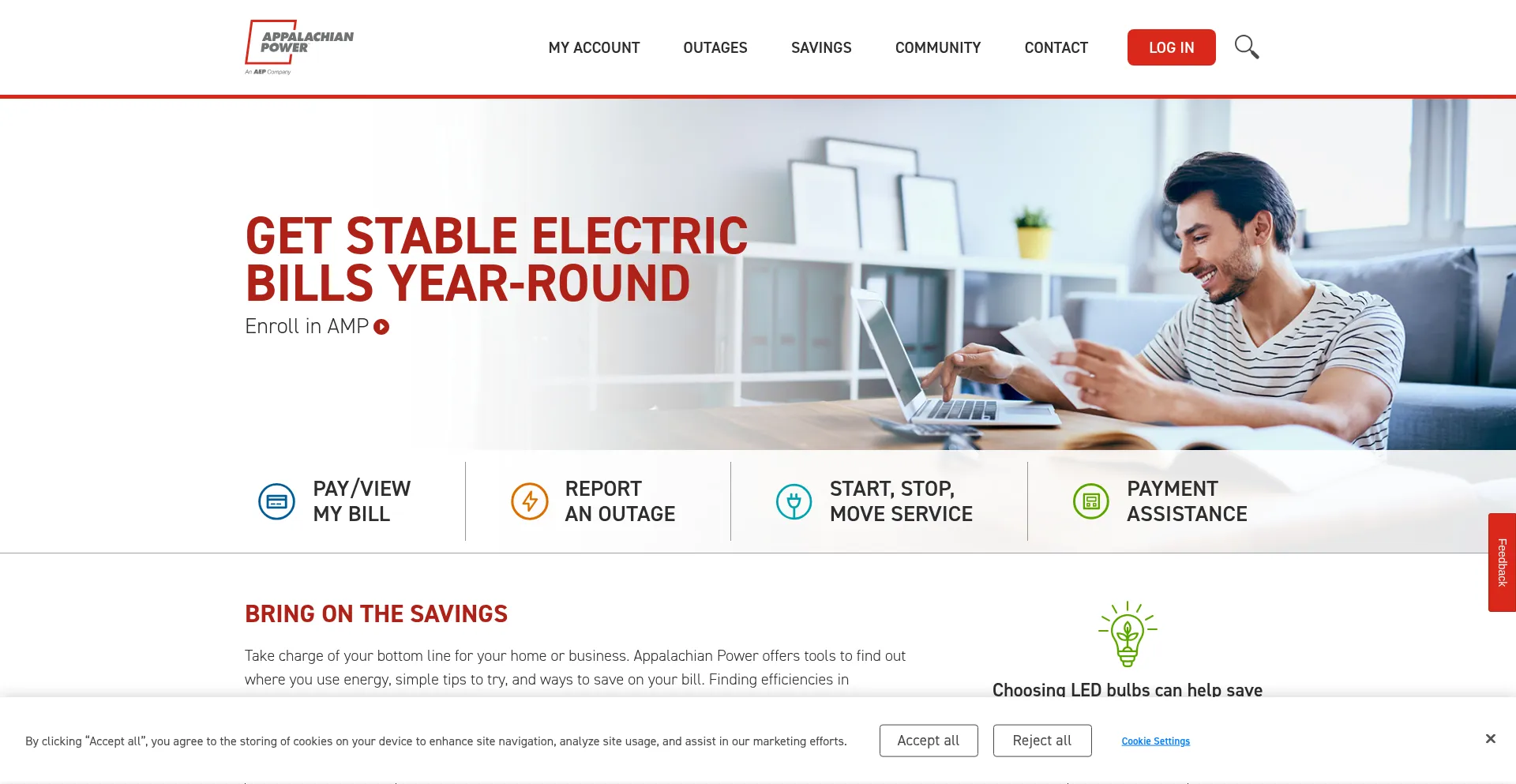 The website implements cookie consent mechanisms in compliance with privacy regulations such as GDPR or CCPA. This demonstrates that appalachianpower.com adheres to data protection standards and provides users with control over personal data collection practices.