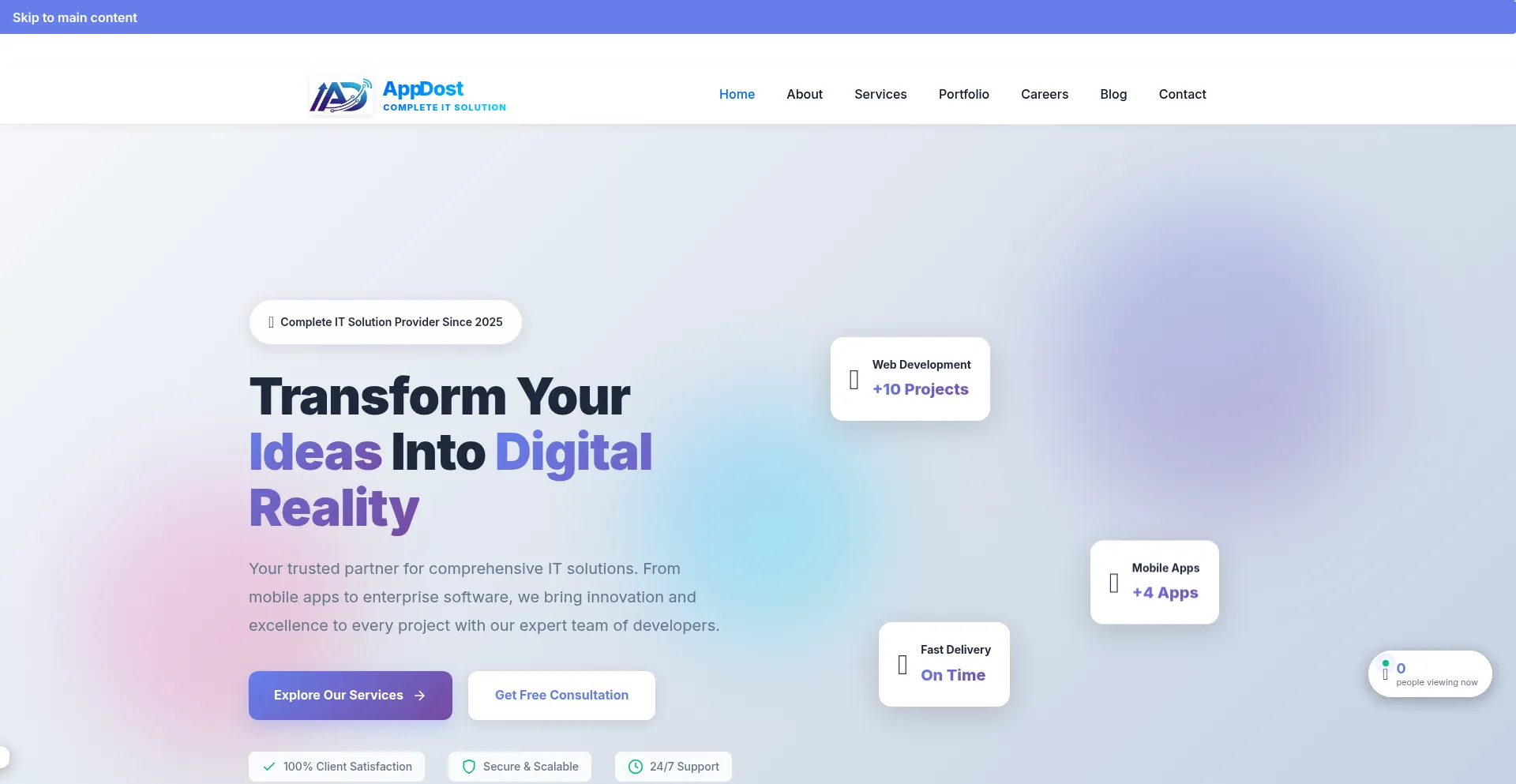 AppDost - Complete IT Solution. Founded in 2025, we've completed 10+ web projects, 4+ Android apps, and 1 CRM project. Expert IT solutions provider.