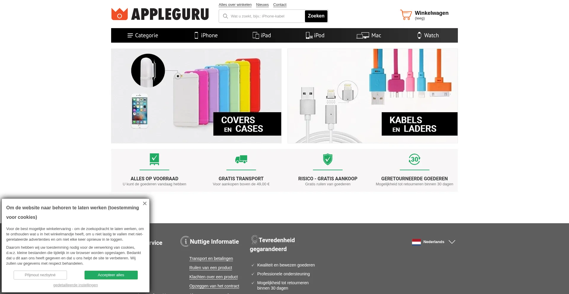 Analysis indicates that appleguru.nl operates as an e-commerce platform facilitating online transactions for goods or services. The website implements shopping cart functionality, payment processing systems, and product catalog features typical of commercial retail operations.