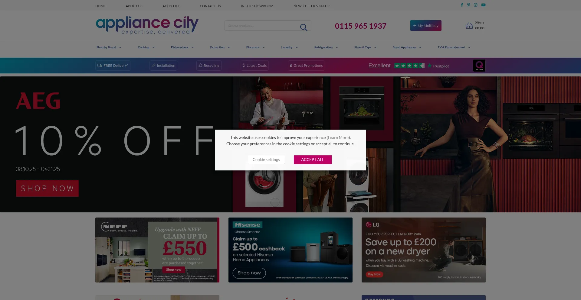 The website implements cookie consent mechanisms in compliance with privacy regulations such as GDPR or CCPA. This demonstrates that appliancecity.co.uk adheres to data protection standards and provides users with control over personal data collection practices.