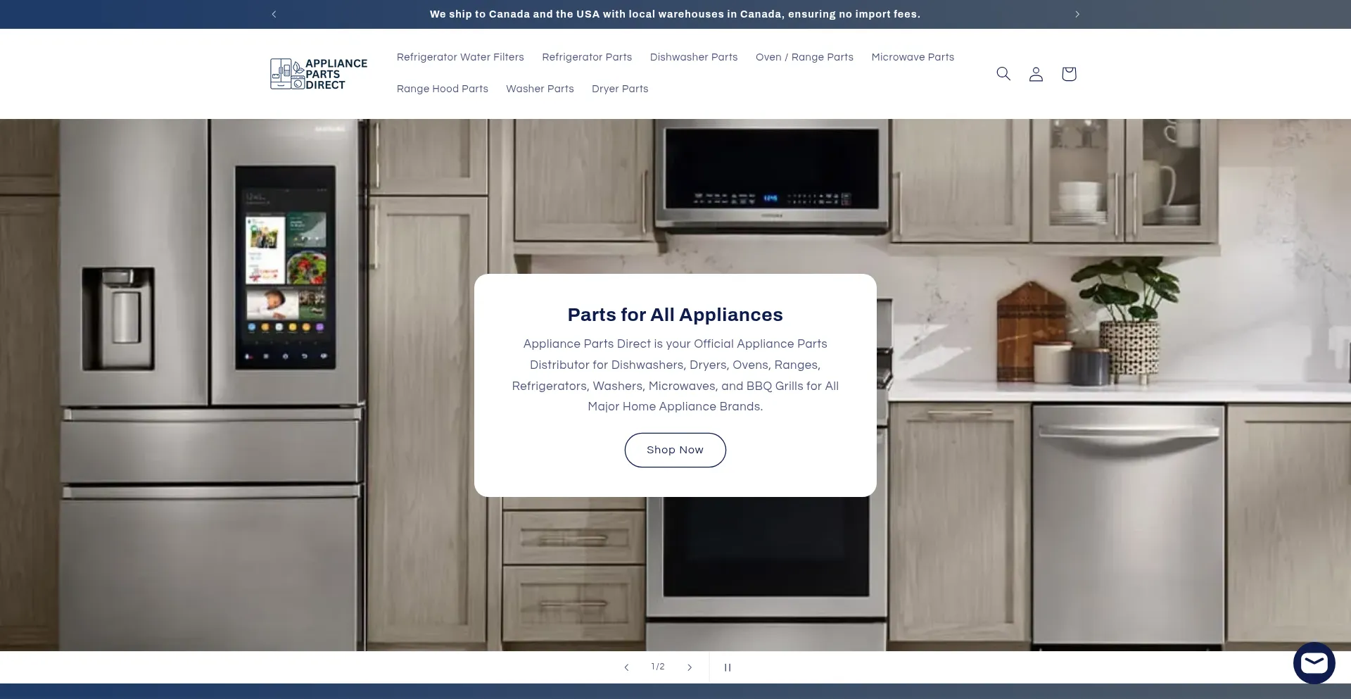 Our analyzer determines that website appliancepartsdirect.ca is using Shopify CMS. Shopify is a popular e-commerce platform, powering around 4.4% of websites globally.