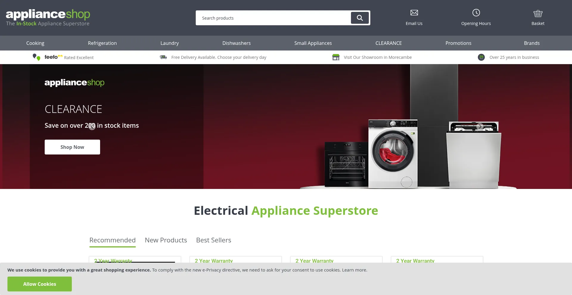 The website implements cookie consent mechanisms in compliance with privacy regulations such as GDPR or CCPA. This demonstrates that applianceshop.co.uk adheres to data protection standards and provides users with control over personal data collection practices.