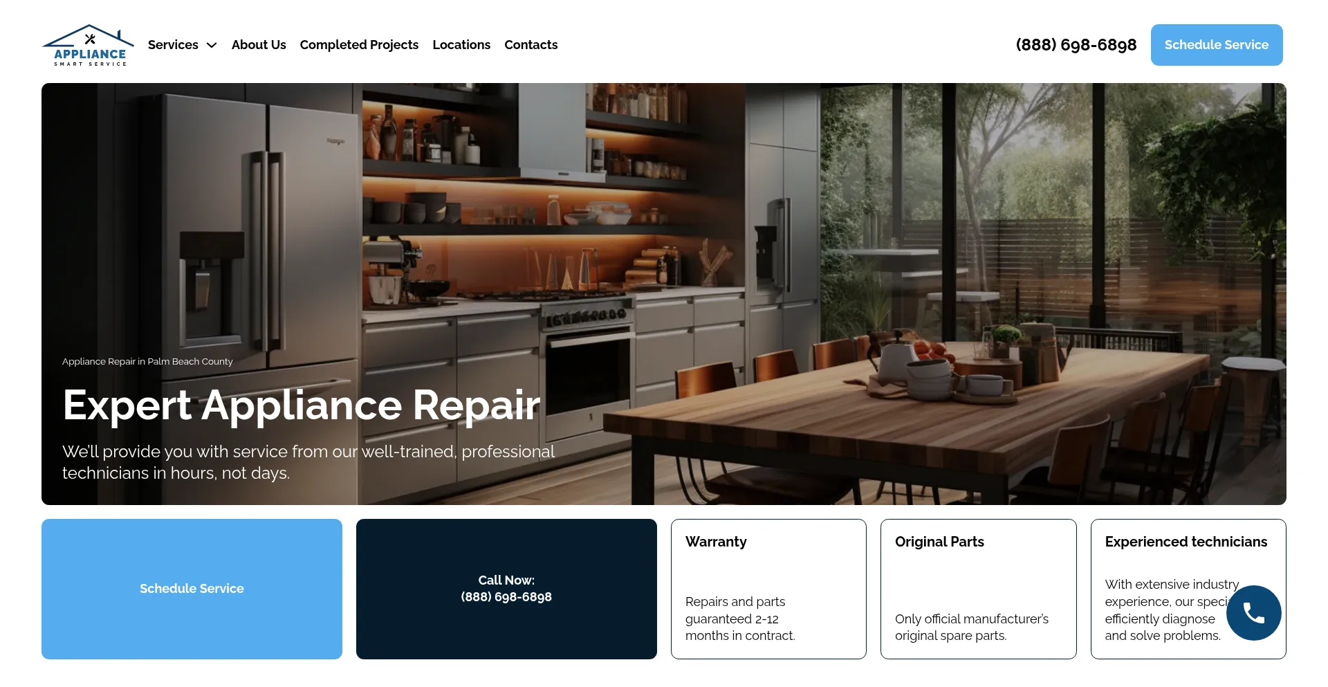 The appliancesmartservice.com website employs search engine optimization (SEO) techniques to improve its visibility and ranking in search engine results pages (SERPs).