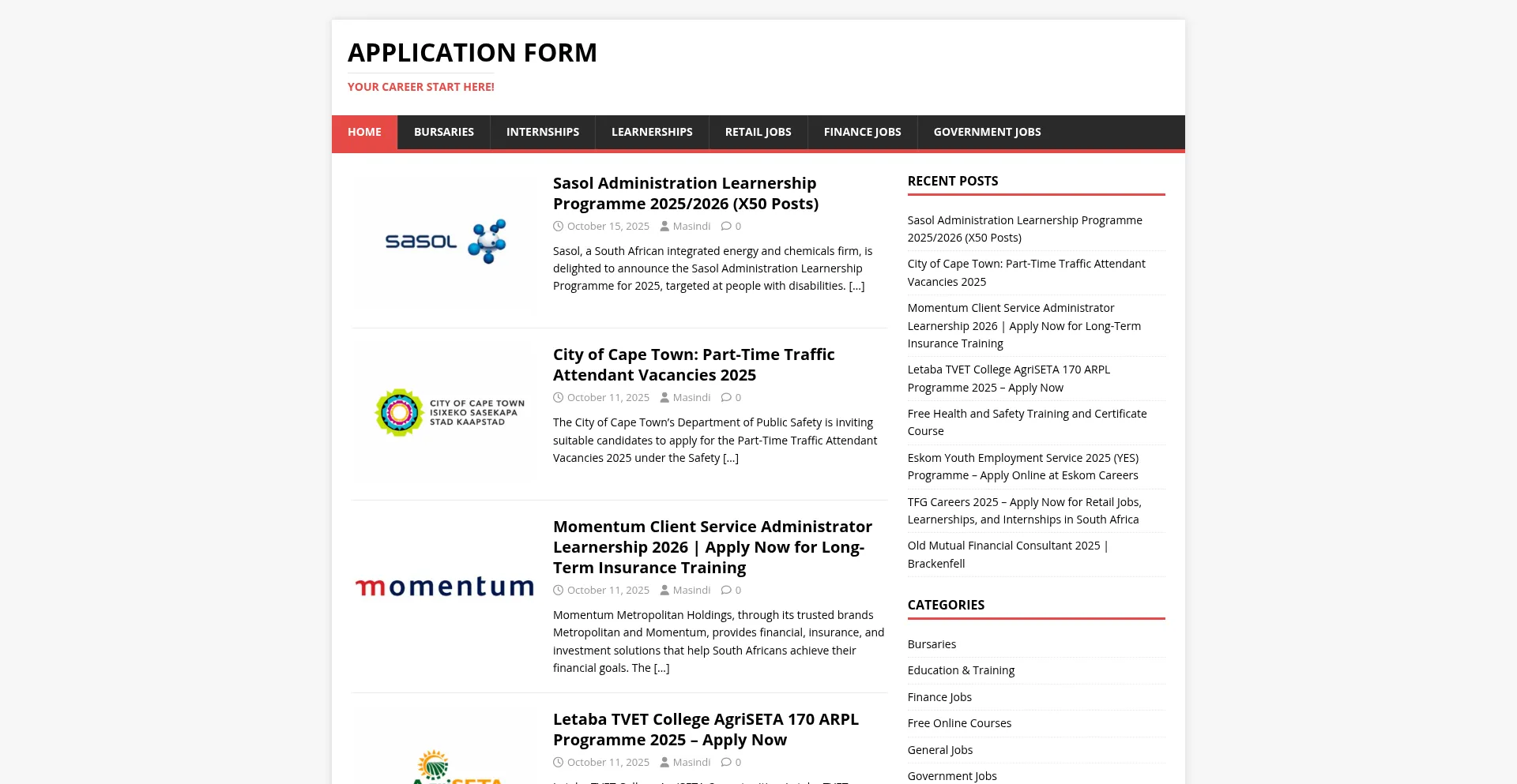 The applicationform.co.za website implements data collection forms requesting personal information including names, email addresses, phone numbers, or other sensitive details. Users should verify the legitimacy of it and review privacy policies before submitting personal data.