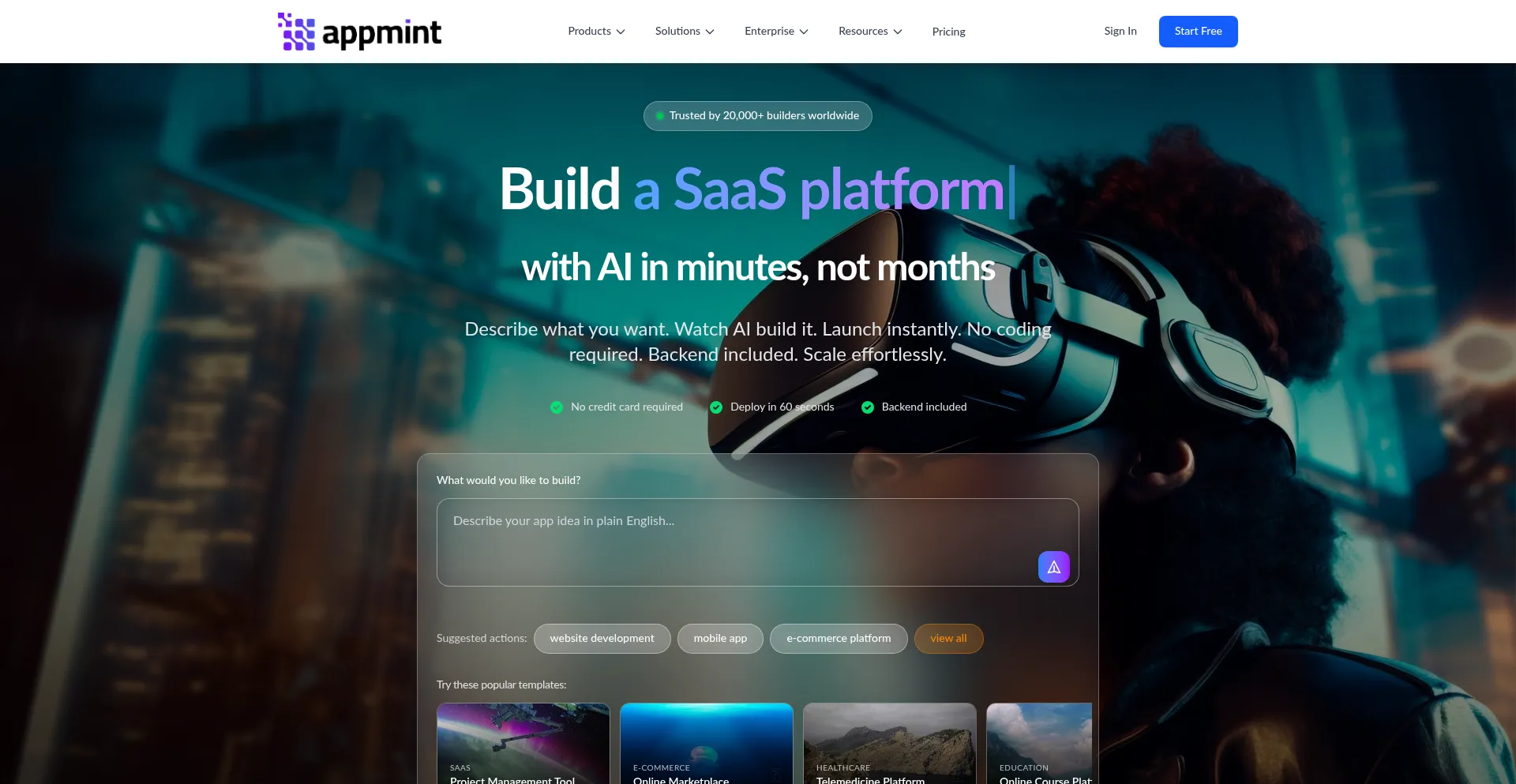 Create professional apps, websites & automation workflows with AI. No coding required. Start free with 100+ templates. Join 20,000+ builders using Appmint.