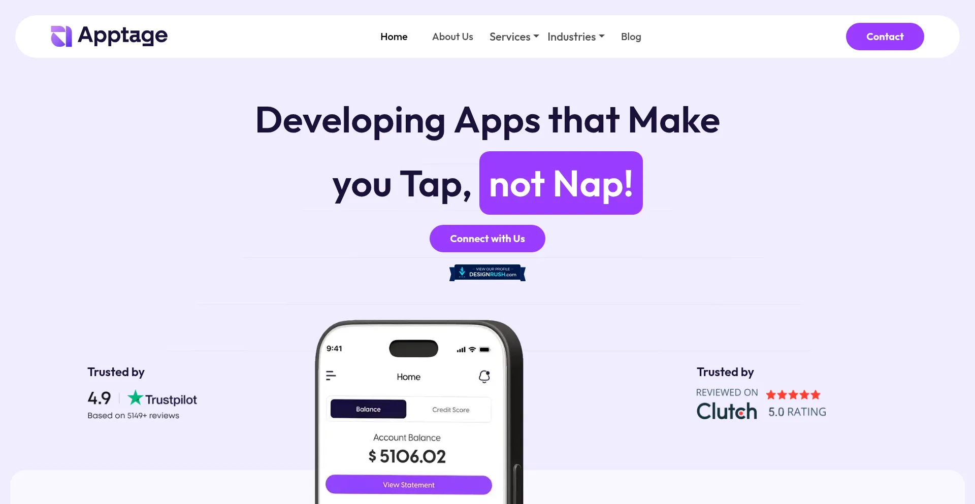 Apptage specializes in custom mobile apps, blockchain, and web development. Trusted by 500+ brands with a 95% success rate. Let’s build apps users love!