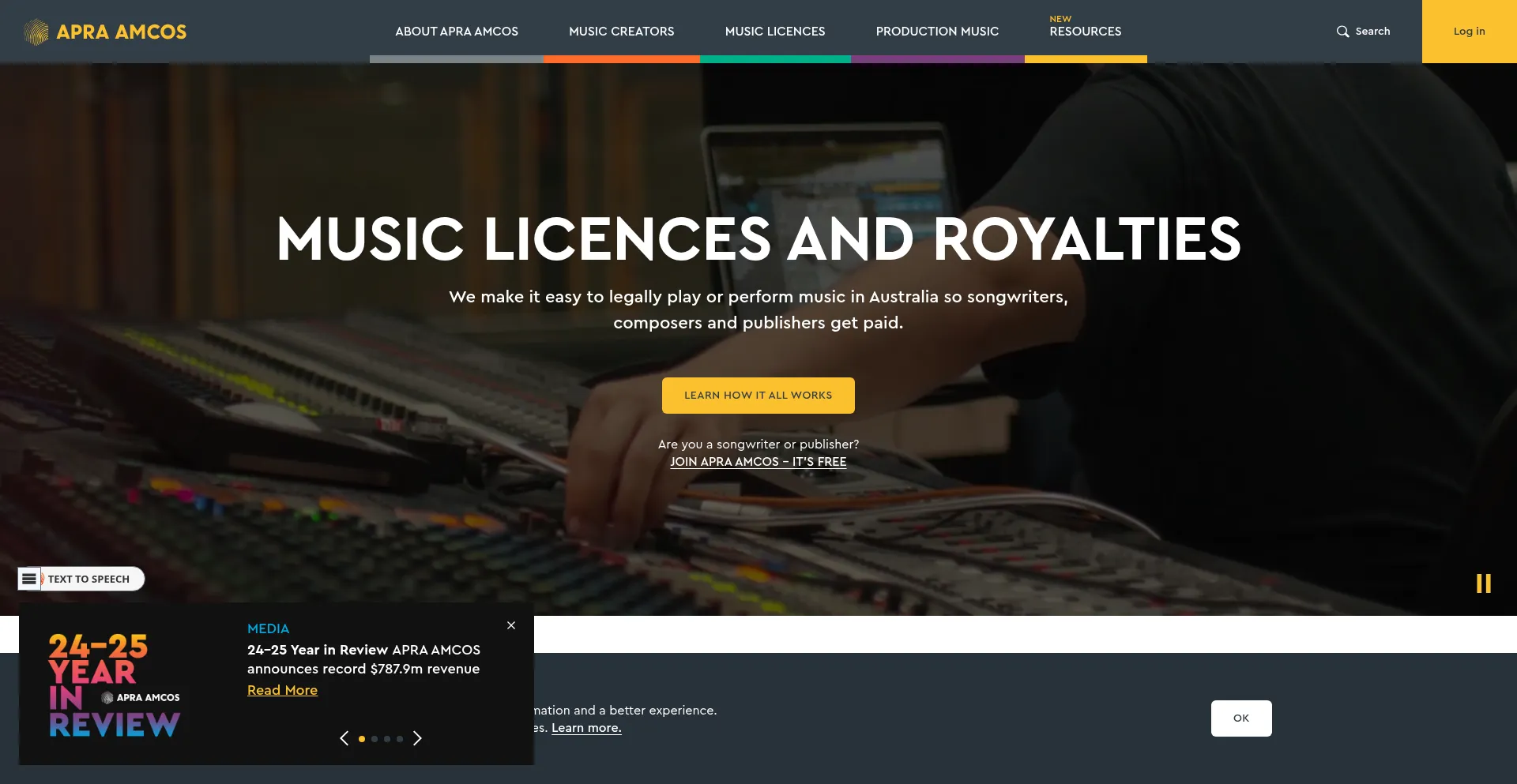 Learn more about music rights management organisation APRA AMCOS. How we operate, copyright, music royalties, how to become a member, and music licences.