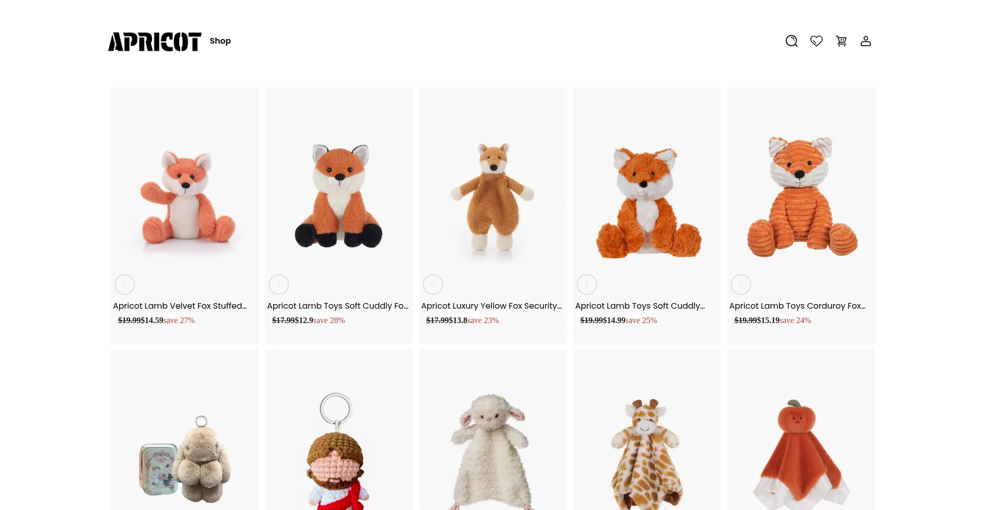 Welcome to Apricot Lamb Plush Toys! Explore our wide range of high-quality stuffed animals, keychains, security blankets, and more. Find incredible discounts and promotions on a...