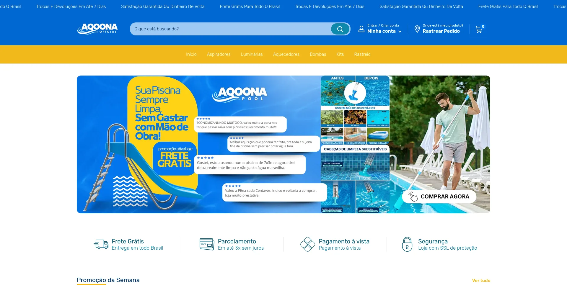 The aqoona.com.br website utilizes free e-commerce platform solutions, which may indicate cost-conscious operations but could also suggest limitations in security features, customer support, or advanced functionality compared to enterprise-grade solutions.