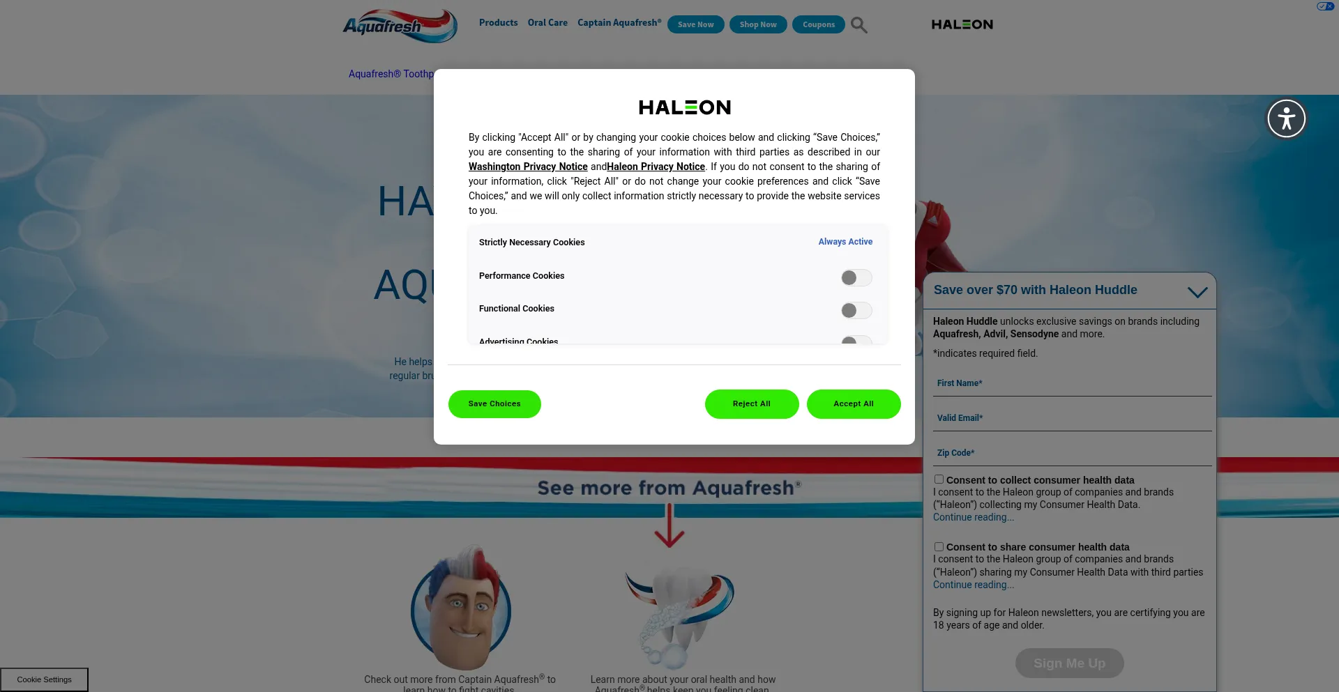 The website implements cookie consent mechanisms in compliance with privacy regulations such as GDPR or CCPA. This demonstrates that aquafresh.com adheres to data protection standards and provides users with control over personal data collection practices.